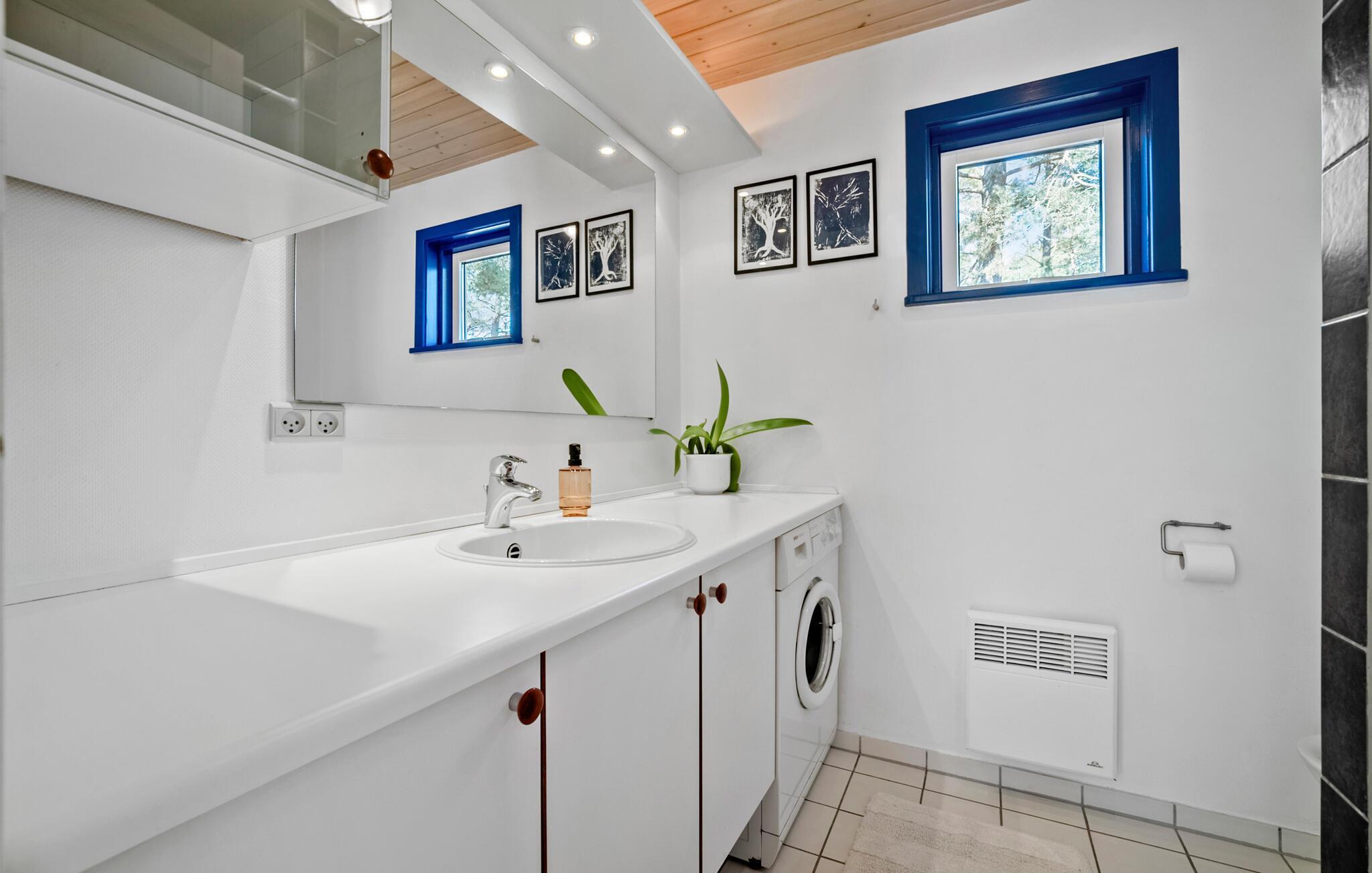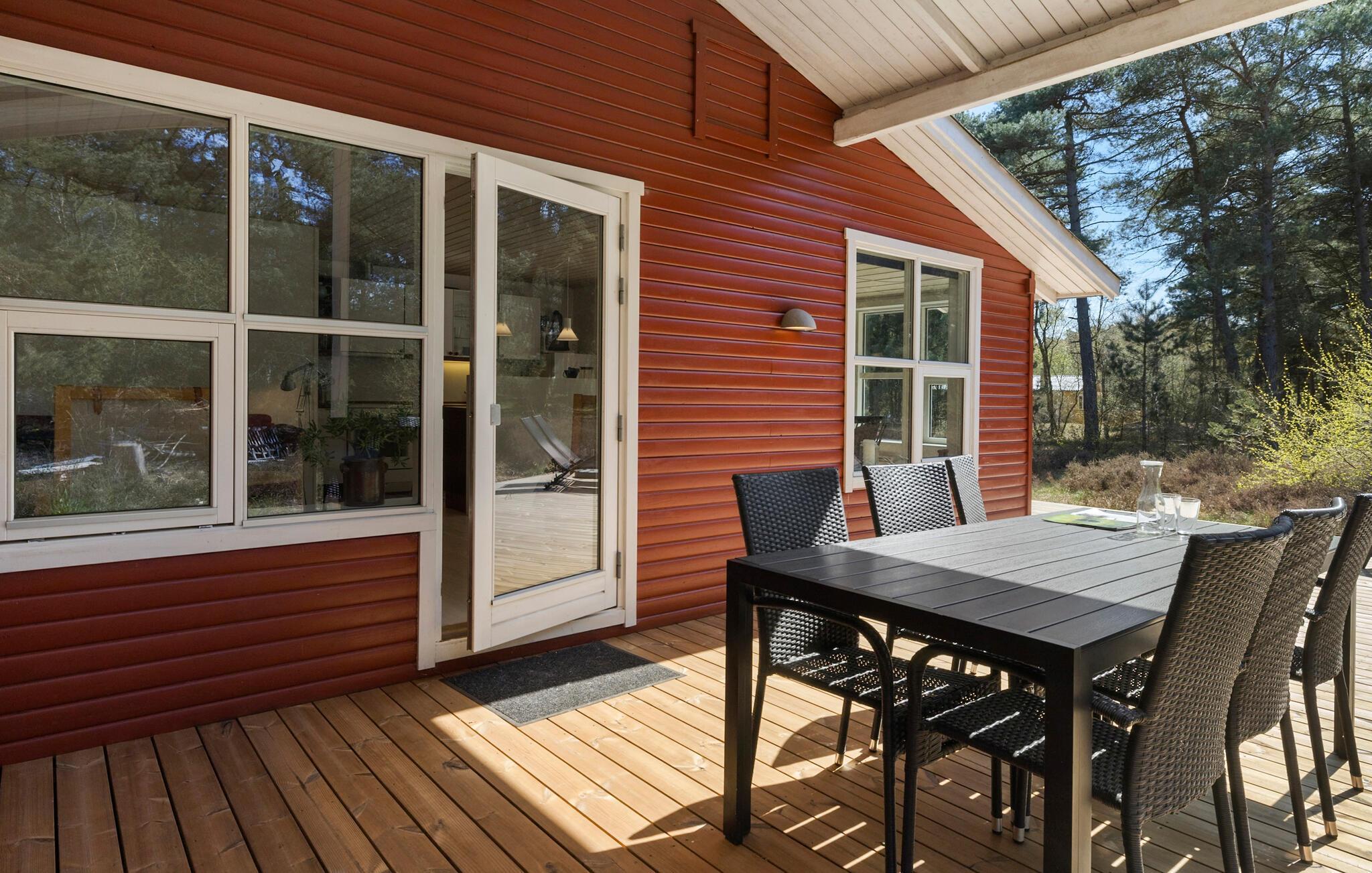 Fra stuen er der udgang til en stor, delvist overdækket træterrasse med havemøbler og en grill, så I kan tilberede lækre feriemåltider. terrassen er det perfekte sted at sole jer, nyde den friske luft, læse en god bog og drikke en kop kaffe eller et godt glas vin. På den omgivende naturgrund er der rigeligt med plads til, at børnene kan lege og være aktive; de vil særligt elske gyngen og sandkassen.