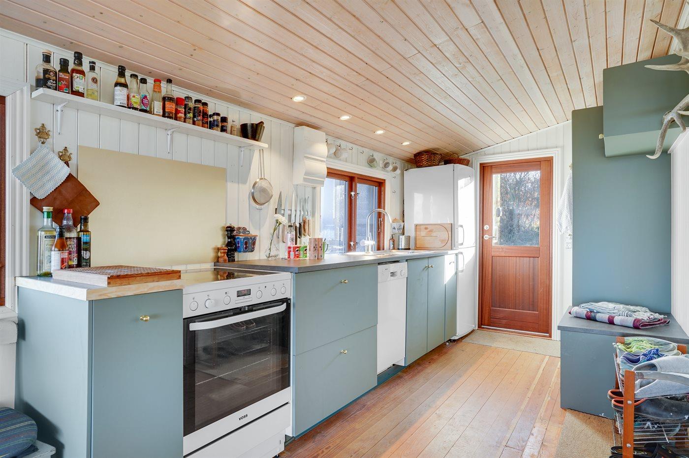 Køkkenet er udstyret med 1 køleskab. Der er 4 induktionskogeplader, varmluftovn samt opvaskemaskine.