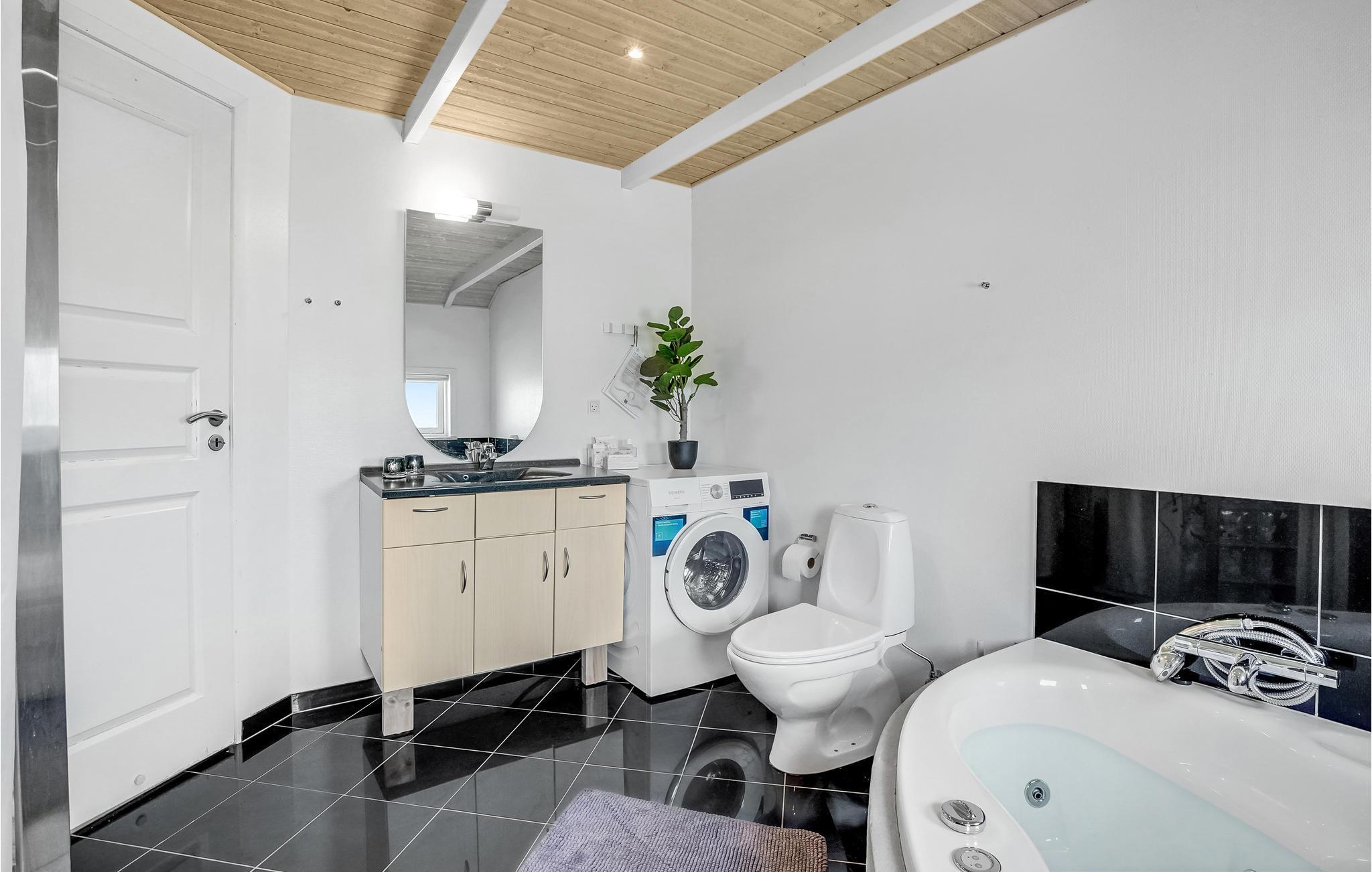 Hyggeligt sommerhus nær Strib Strand med sauna, spabad og flere terrasseområder.