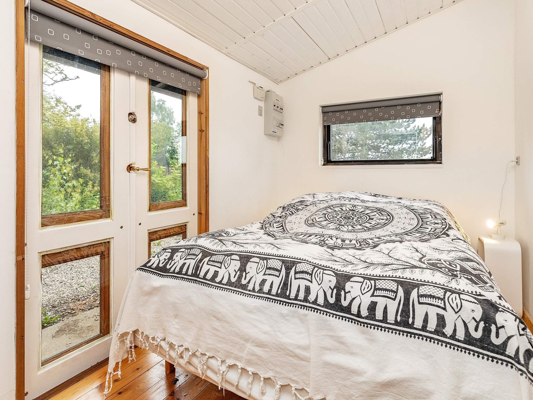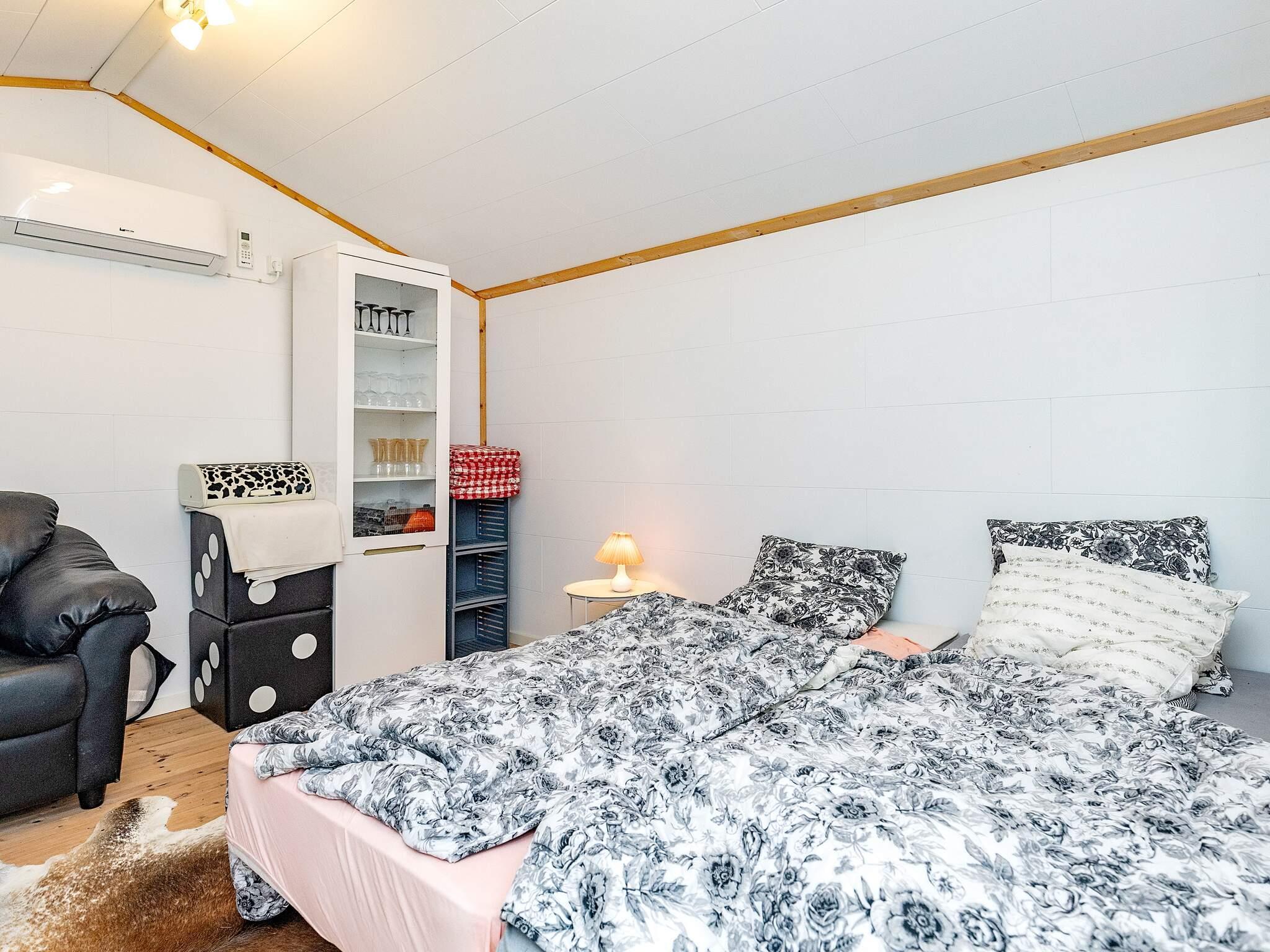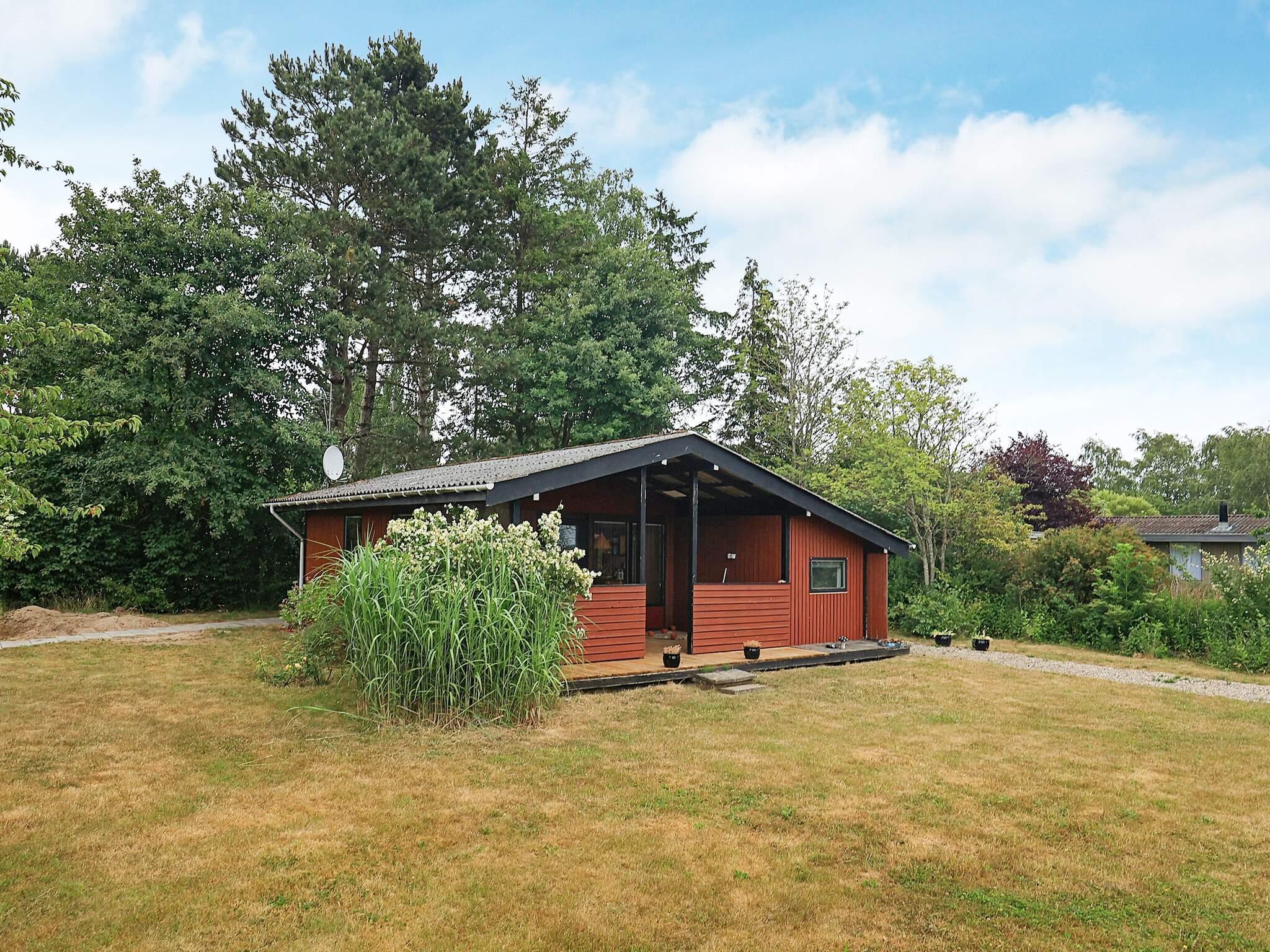 Godt beliggende ældre sommerhus, med overdækket terrasse og havemøbler. Huset er sparsomt indrettet med meget lille spise- og opholdsstue i åben forbindelse med køkkenhjørne med elkomfur og køleskab. Mindre badeværelse med toilet, håndvask og bruser. Værelse med 2 børnekøjer. Soveværelse med dobbeltseng. Varmepumpe i hovedhuset.