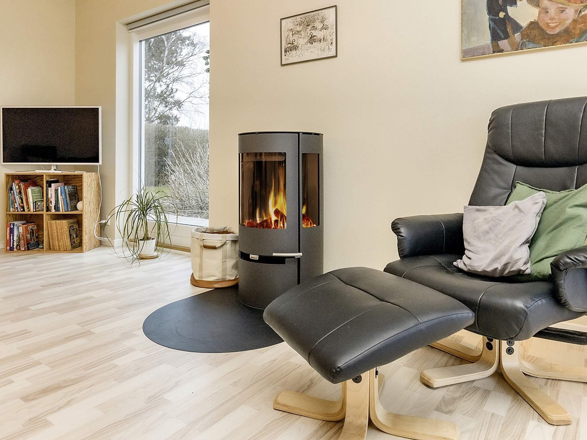 Køkken: Brændeovn, køleskab, fryser 60 - 99 l, mikroovn, induktionskomfur, kaffemaskine, opvaskemask.