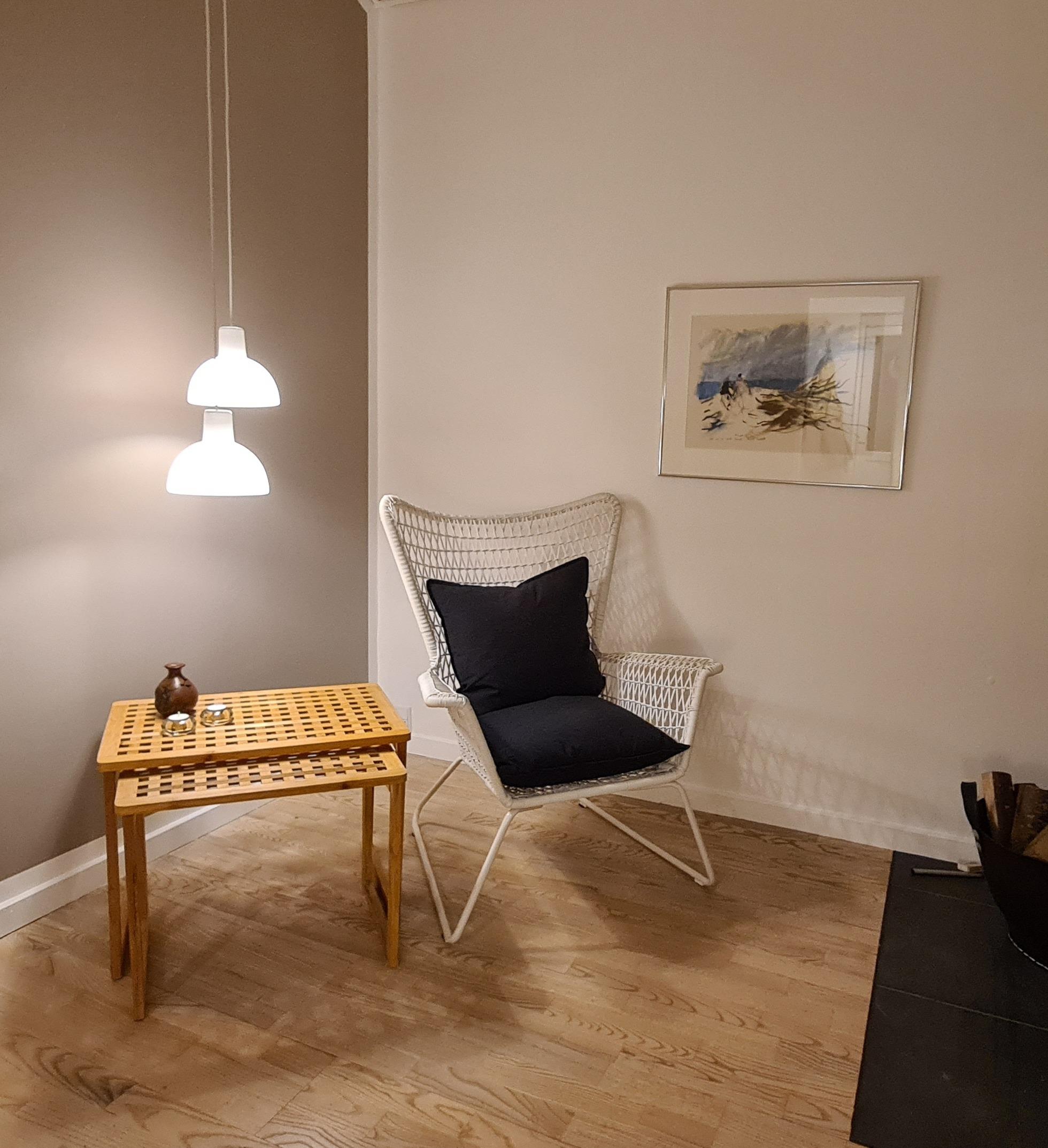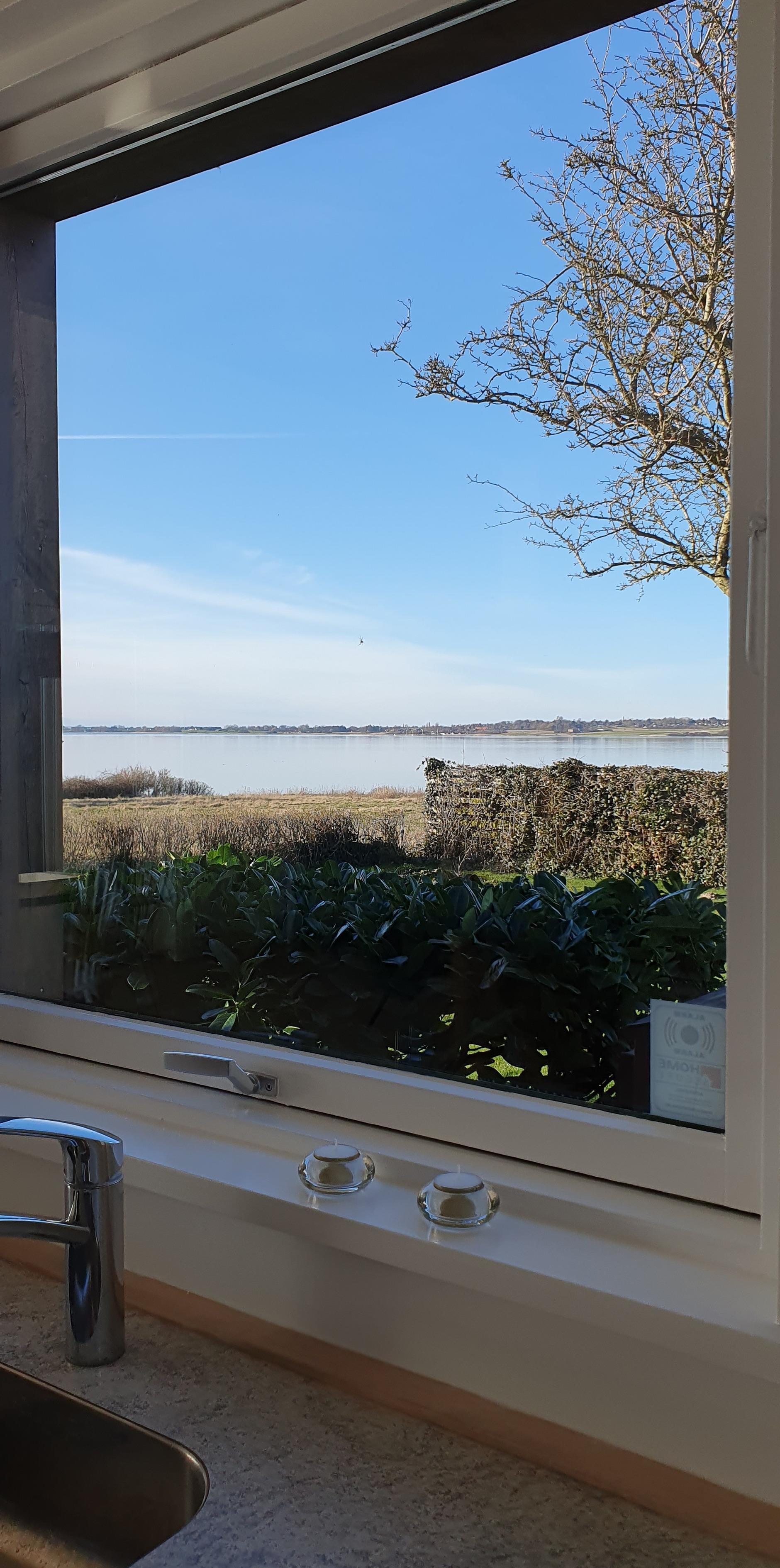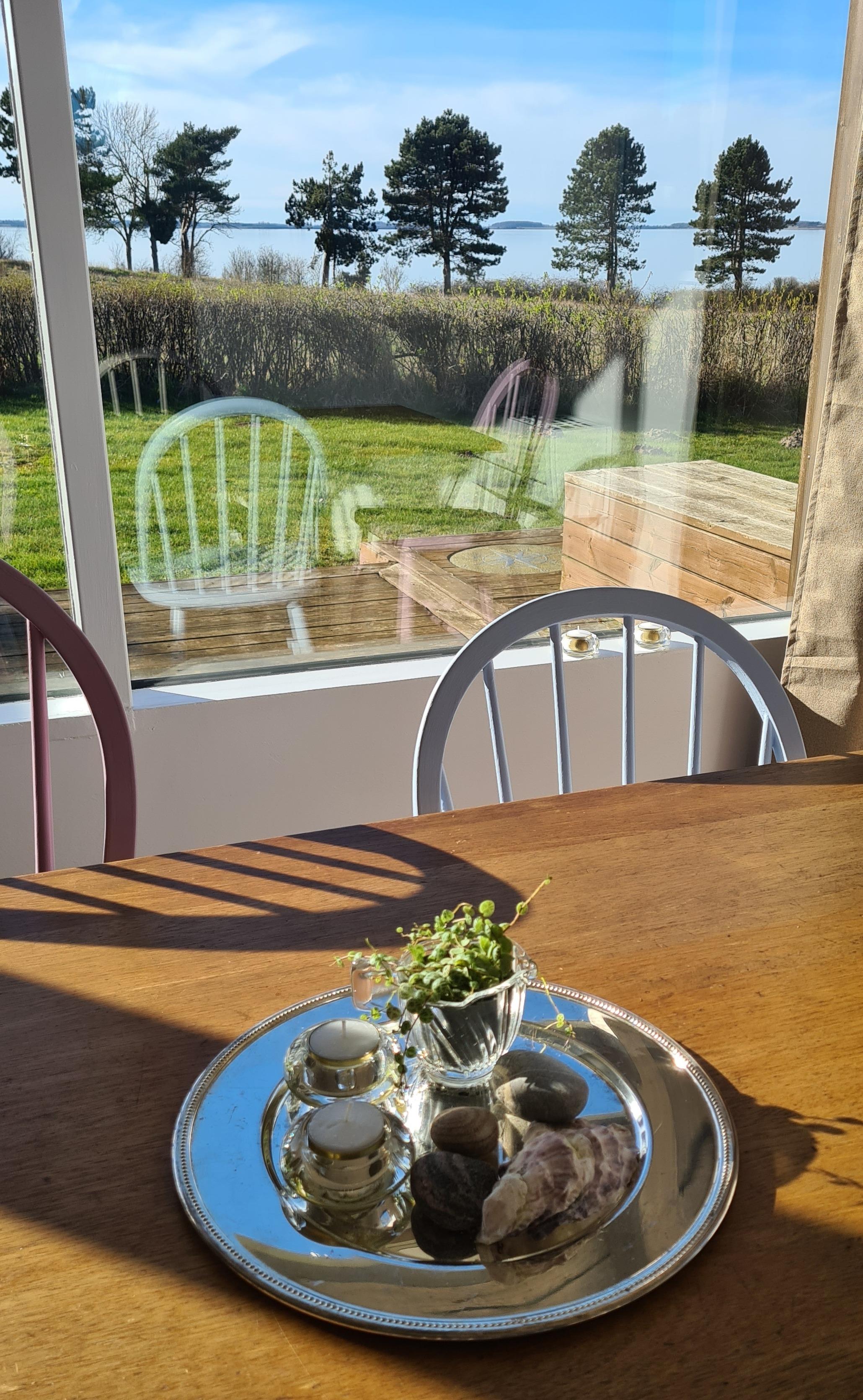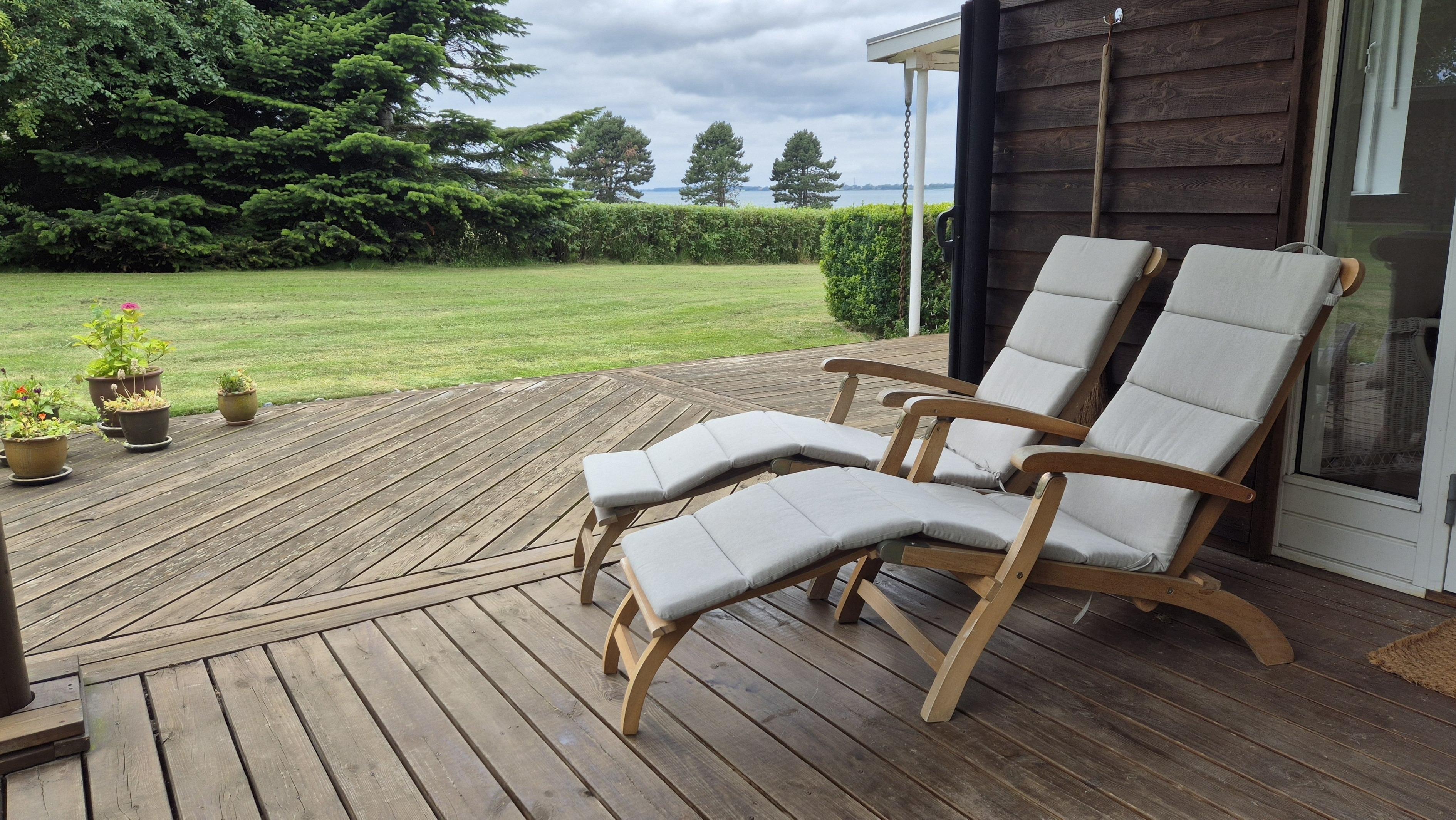 Das Leben wird einfach schöner, wenn Sie die Sonne auf der 78 m² großen, teilweise überdachten Holzterrasse genießen, auf der Sie immer Schutz, Privatsphäre und natürlich Meerblick finden. Oder genießen Sie Ihre heutige Mahlzeit drinnen am großen Esstisch und entspannen Sie in einer der gemütlichen Ecken des Hauses, während Sie immer den einzigartigen und schönen Blick über das Wasser auf Bogø und Møn im Auge behalten.