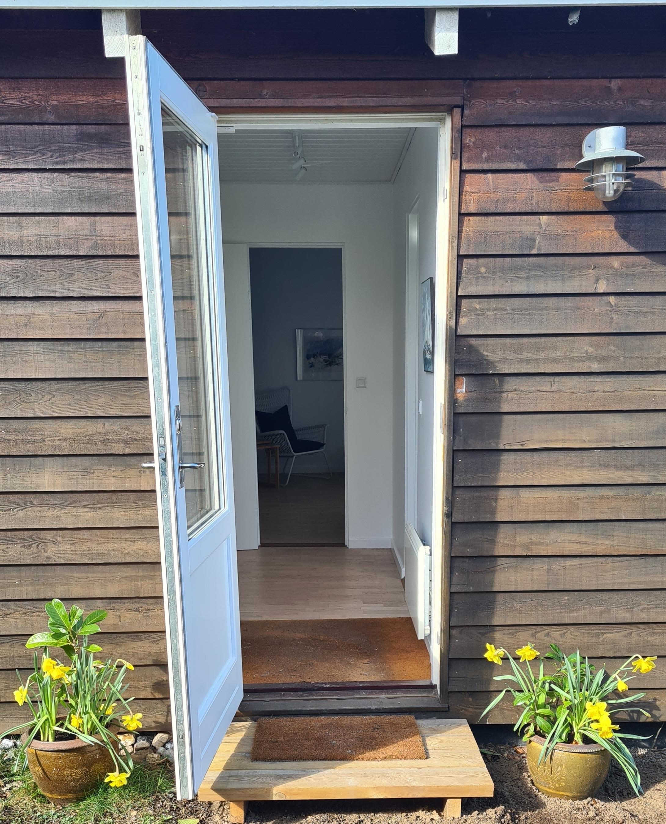 Das neu renovierte Sommerhaus ist im maritimen Stil in hellen und einladenden Farben eingerichtet.