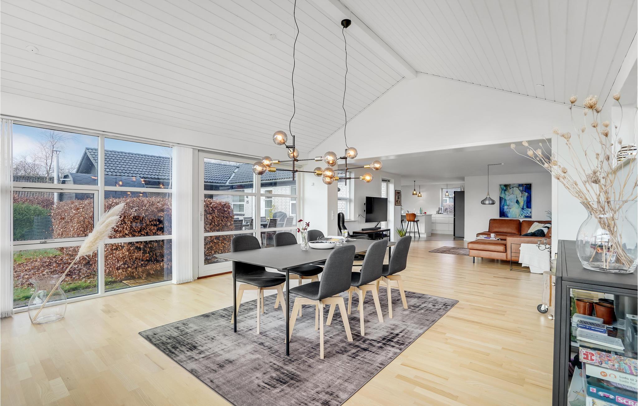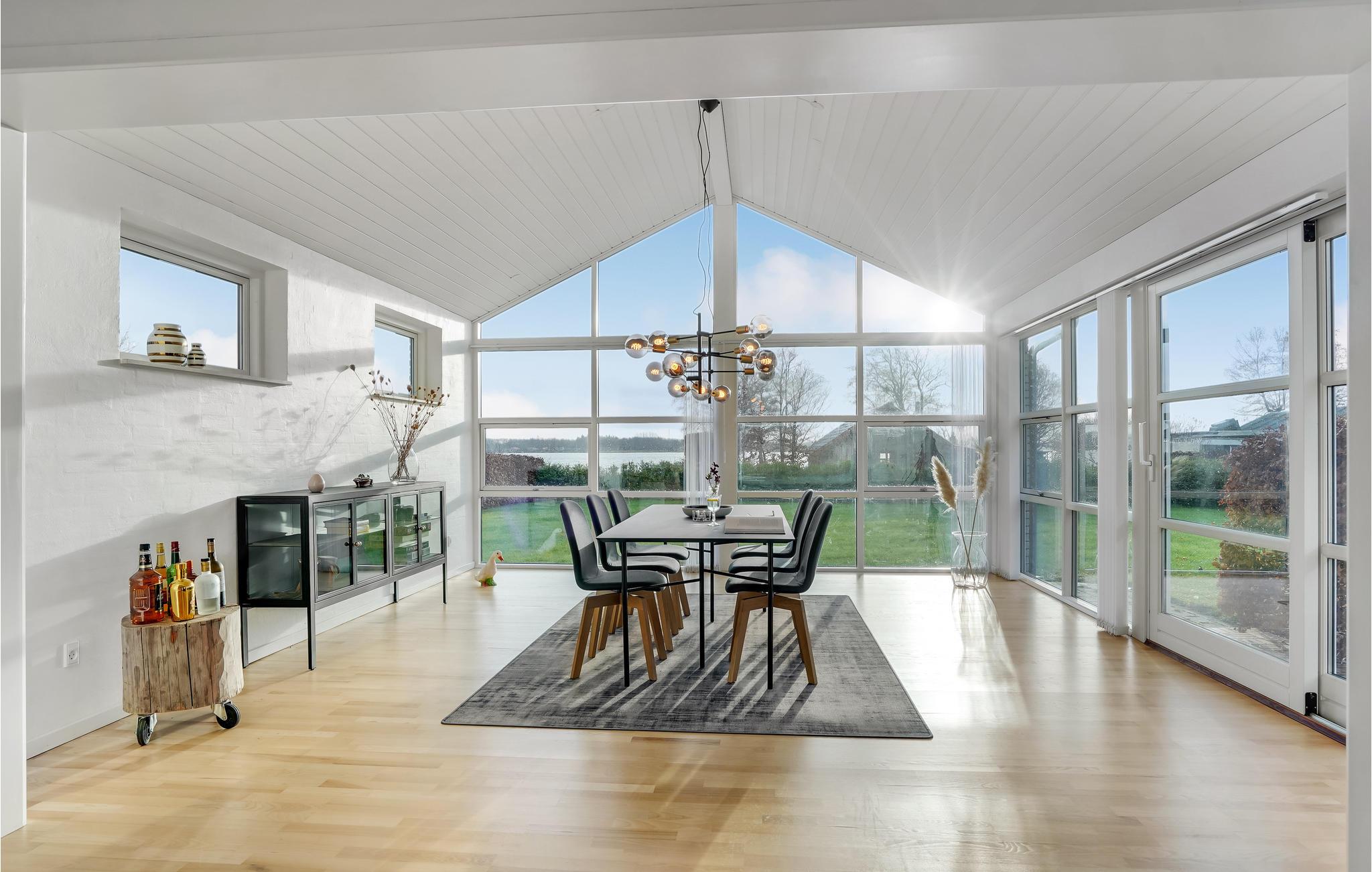 Det lyse hus, som byder velkommen med en fantastisk beliggenhed direkte ved søen, byder på de bedste forudsætninger for en afslappende pause. Nyd måltiderne sammen foran den store vinduesfront, hvor I fuldt ud kan nyde den vidunderlige udsigt over søen. Tag en bog fra hylden og slap af i den komfortable sofa. Hop i søen fra badebroen og varm jer igen i saunaen. Nyd solen på sommerhusets terrasse, tilbered lækre retter på grillen og afslut en skøn dag under åben himmel.