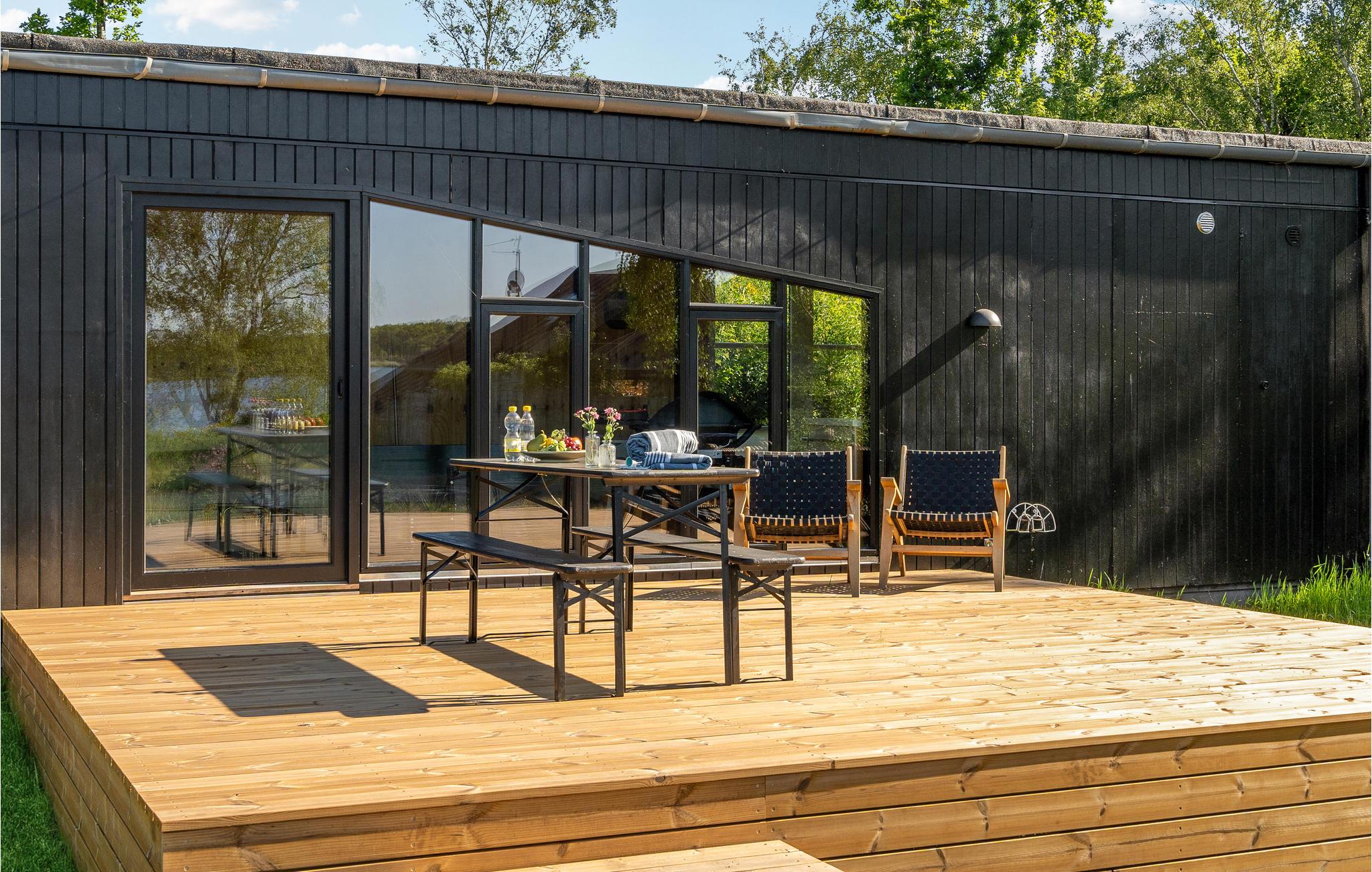Nyd en moderne ferie i et lyst, hyggeligt træhus med søudsigt ved Sunds Sø i naturskønne omgivelser.