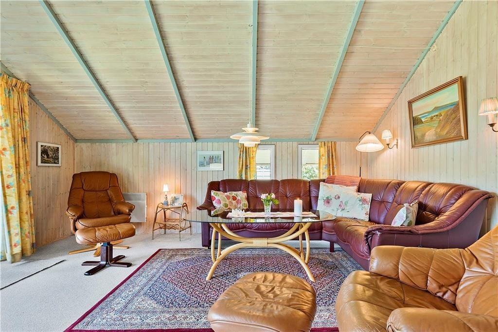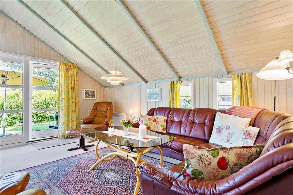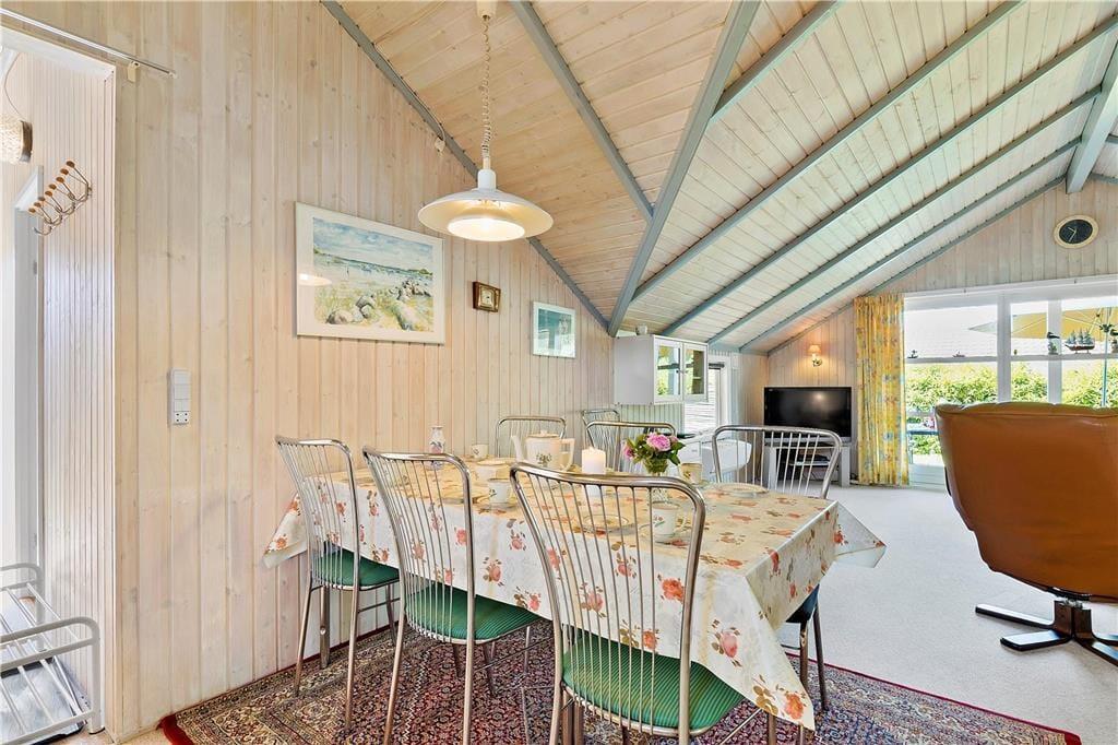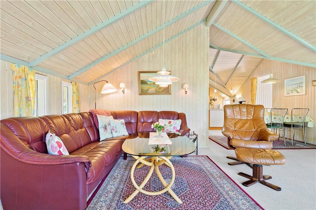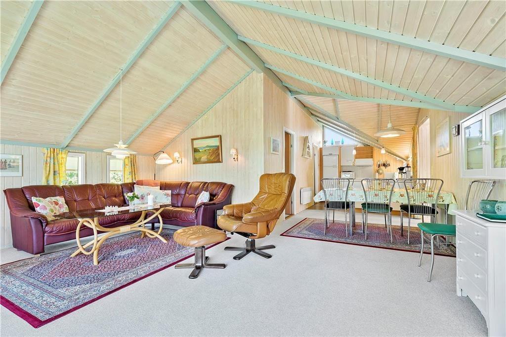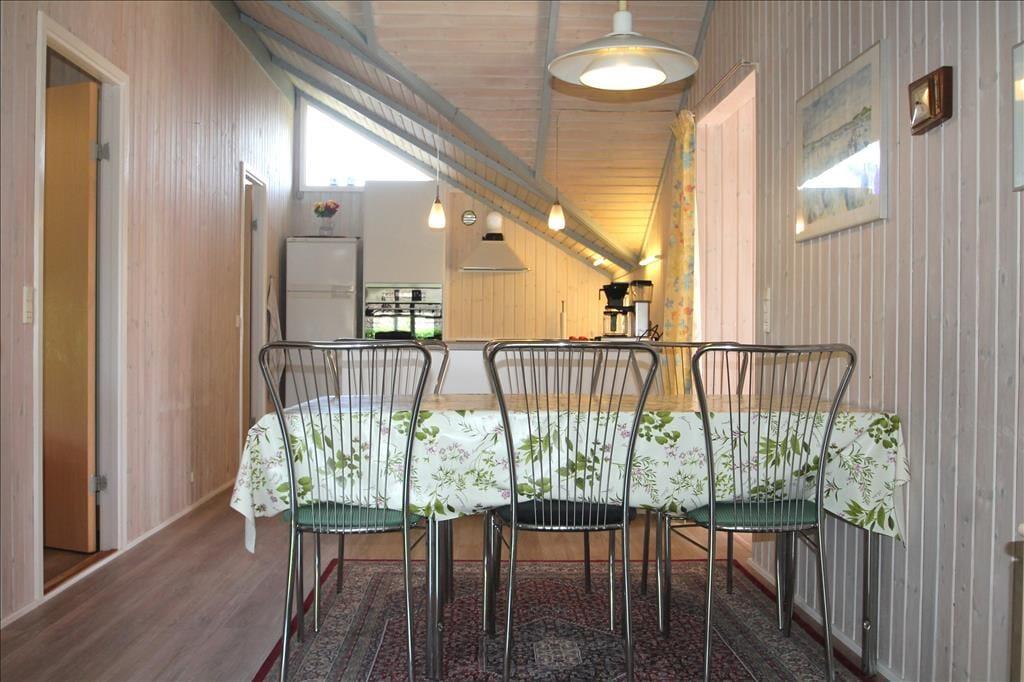 Feriehuset er indrettet med kombineret køkken og opholdsstue. Køkken med keramisk komfur, emhætte, opvaskemaskine, mikroovn og køleskab med fryser. Lyst indrettet opholdsstue med udgang til delvist overdækket terrasse, god spiseplads, hjørnesofa i læder, og TV med danske, svenske, norske og tyske programmer. Badeværelse med bruseniche, gulvvarme og vaskemaskine. Tre soveværelser, to med dobbeltsenge, og et med en enkeltseng og køjeseng (hvoraf den ene køje er 85x200). Huset opvarmes med varmepumpe og elvarme.