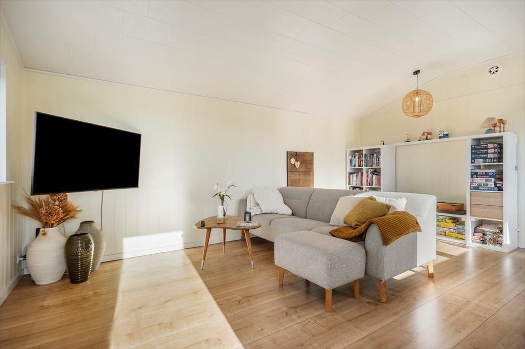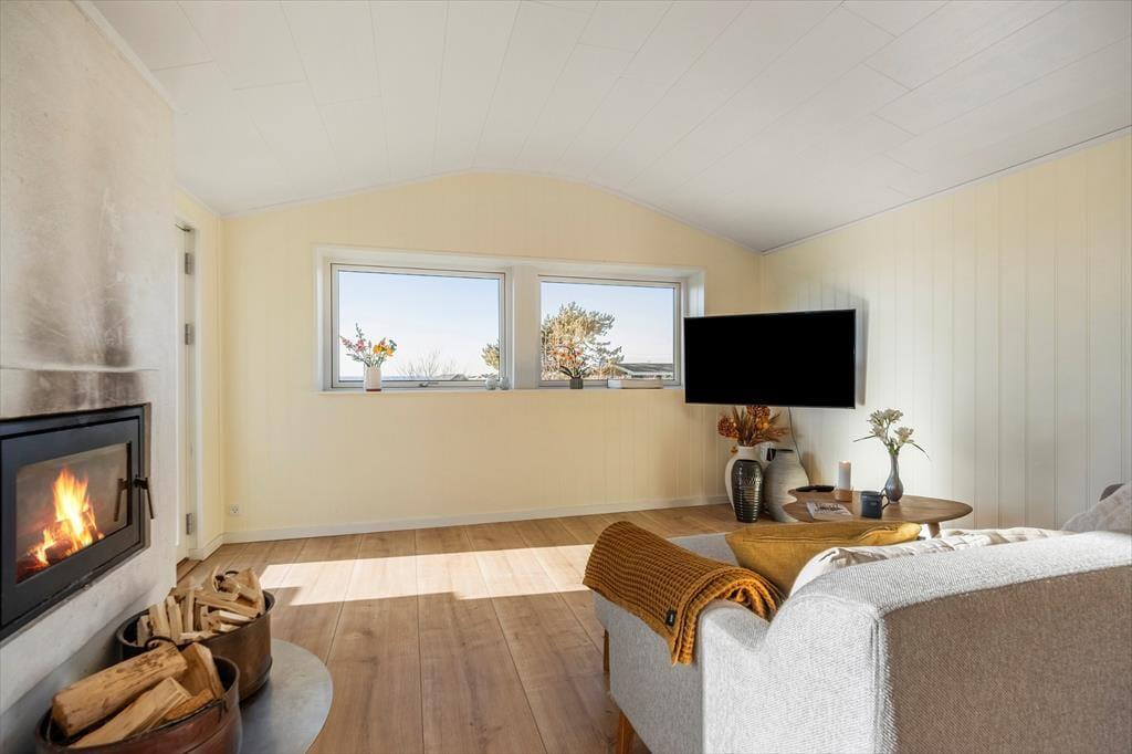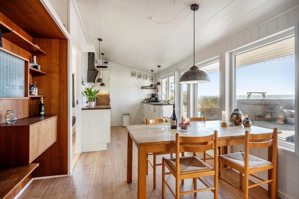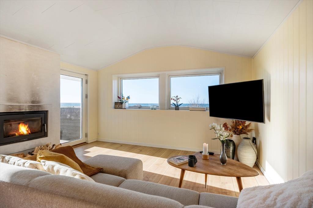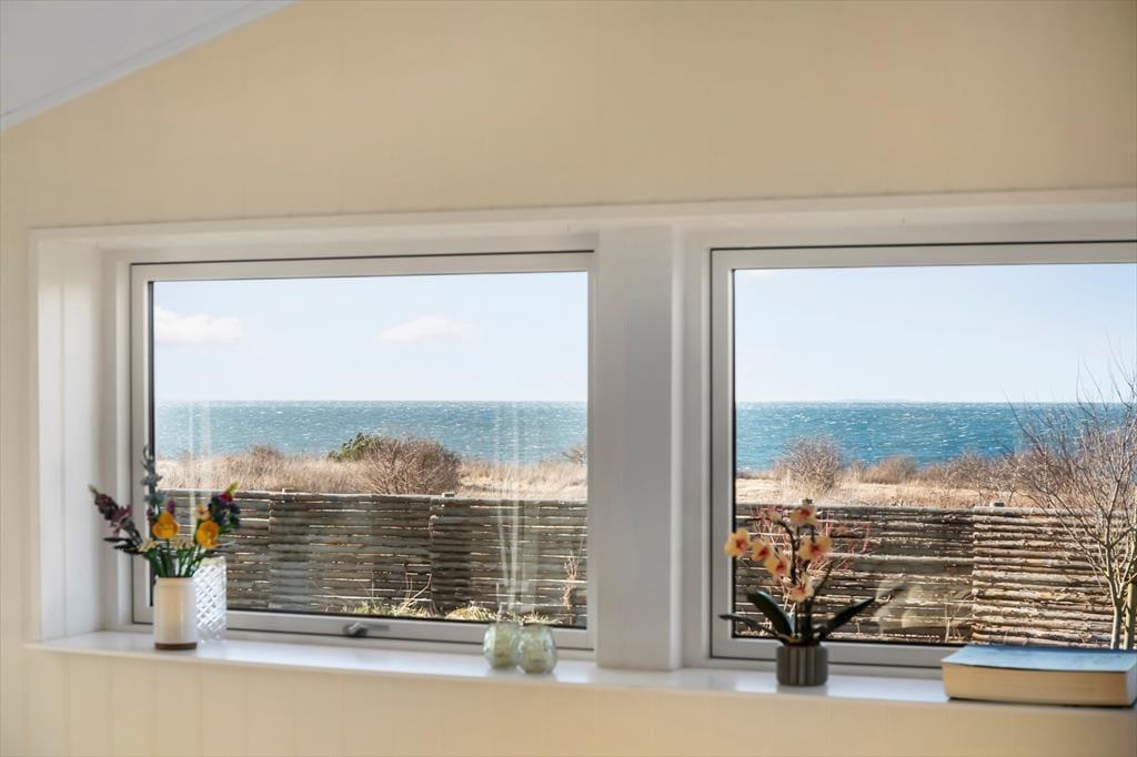 Hyggeligt sommerhus ved Bjerge Strand med havudsigt, moderne faciliteter og kun 100 meter til stranden.