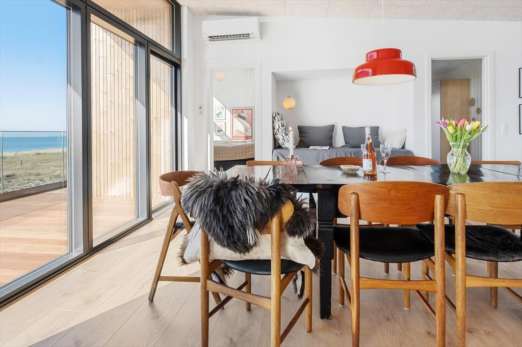 Nyt lækkert feriehus som er opført i 2023. Huset er med kombineret køkken og opholdsstue. Der er store vinduespartier fra gulv til loft i opholdsstuen, som giver huset masser af lys og luft. Køkken med indbygget ovn, kogeplader, opvaskemaskine og køleskab med fryser, kaffemaskine og elkedel. Opholdsstue med udgang til stor træterrasse med fri udsigt over Storebælt, hyggelig spiseplads, sofahjørne med tv. Fra stuen er der en fantastisk havudsigt. To badeværelser med brusenicher og gulvvarme. Det ene badeværelse indeholder desuden vaskemaskine og tørretumbler. Fire soveværelser, hvoraf de to er med udsigt ud over vandet. To med dobbeltsenge, og to med to enkeltsenge. Huset opvarmes med varmepumpebrændeovn og elvarme.