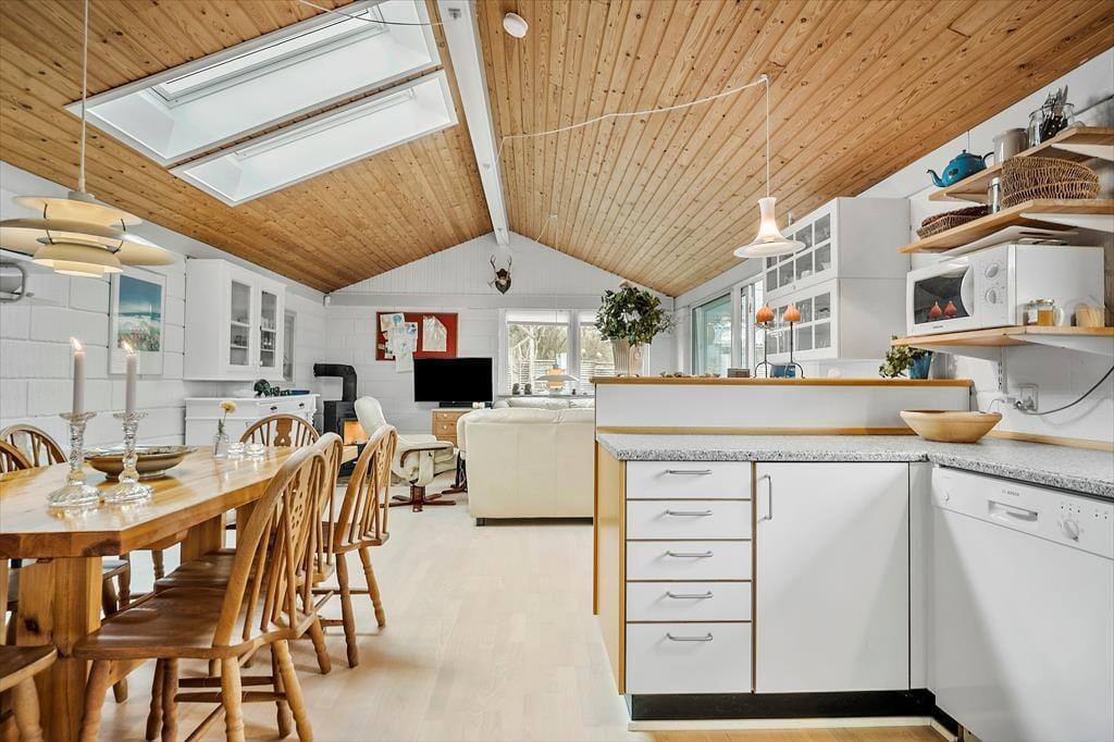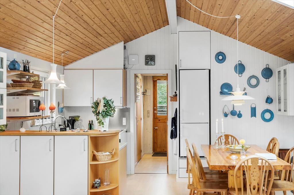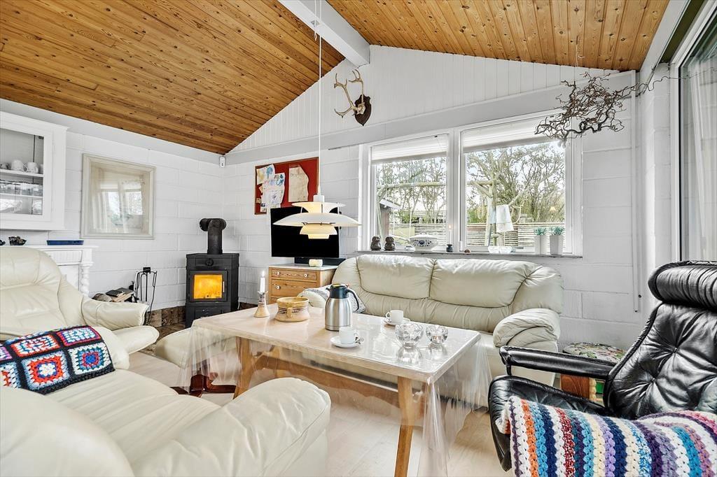 Velkommen indenfor: Sommerhuset er med kombineret køkken og opholdsstue med hyggelig spiseplads og et sofahjørne med TV. Fra opholdsstuen er der udgang til en dejlig lun og lys havestue, hvor du kan nyde udsigten til haven og forlænge sommeren. Soveværelset i huset har en dobbeltseng, og desuden er der to fine annekser med yderligere sovepladser. Badeværelse har bruseniche, toilet og håndvask. Sommerhuset har en dejlig hyggelig indretning, hvilket giver en behagelig atmosfære. Tænd også gerne op i husets brændeovn på de køligere dage, og lad hyggen og feriestemningen brede sig.