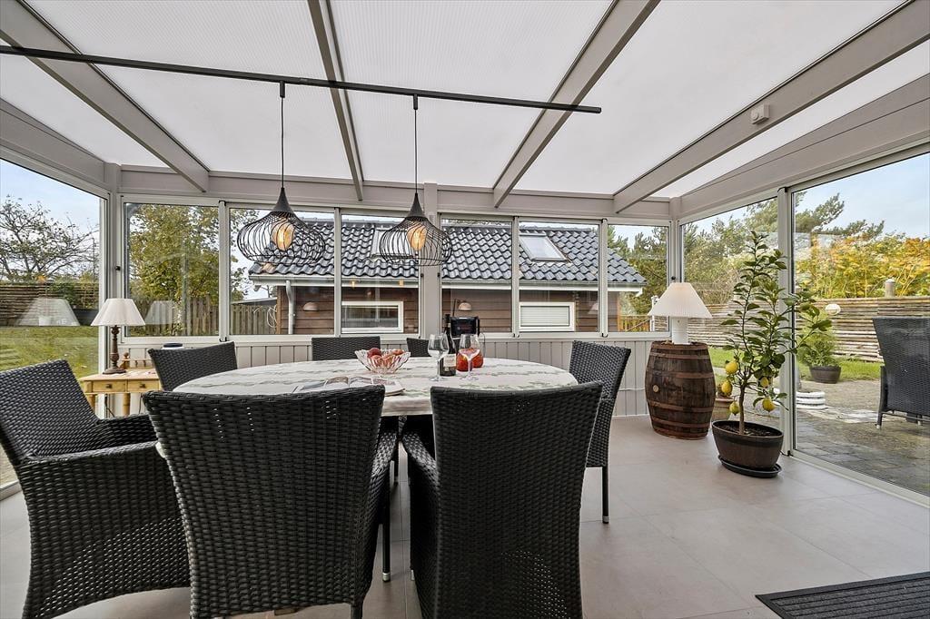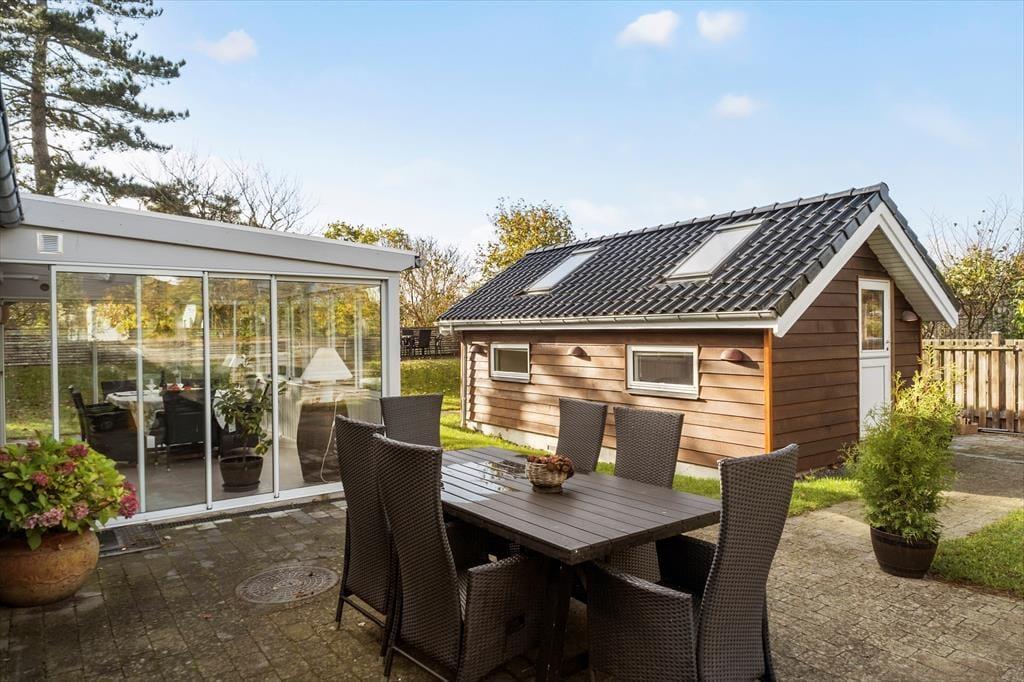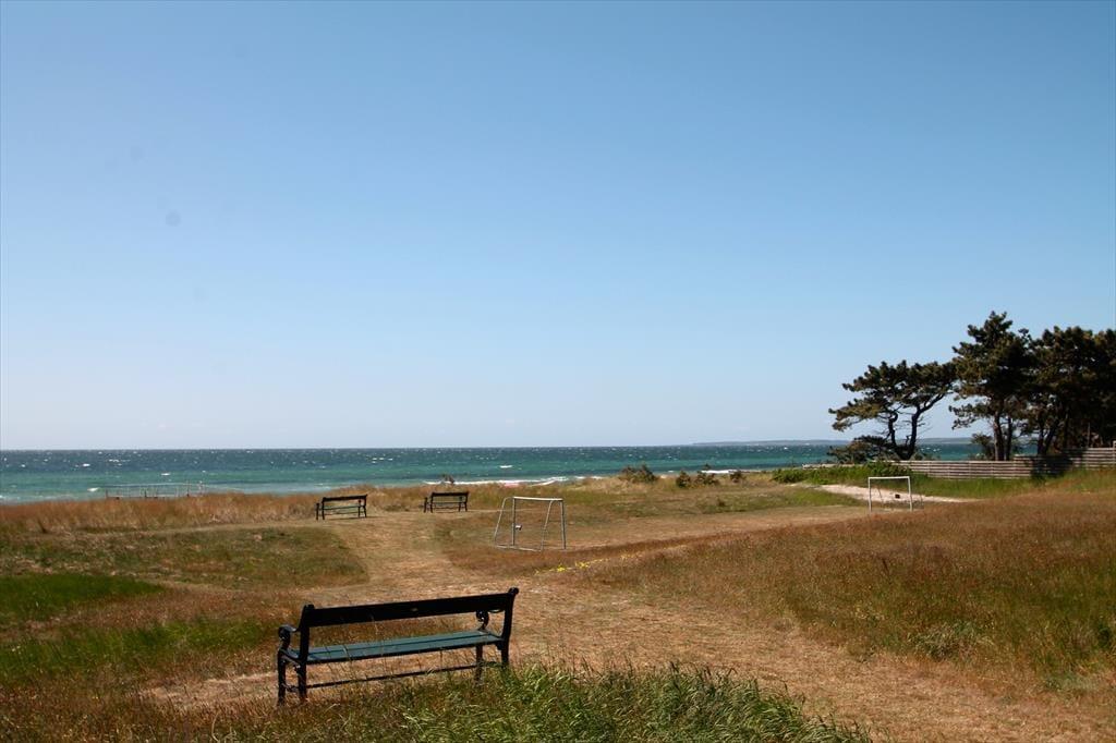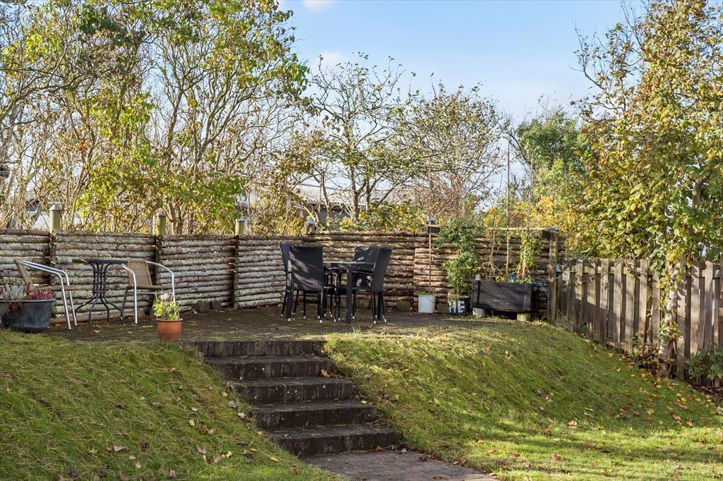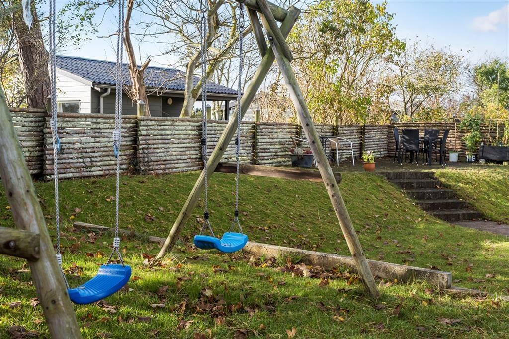 Nyd livet udenfor: Der bydes på frisk luft og et lille havkig fra havestuen og med meget kort gåafstand til stranden, er der god mulighed for at nyde havluften og en strandtur med børn og hund. Der er desuden en dejlig terrasse, hvor ferien kan nydes i fulde drag. Ved feriehuset er der havemøbler, udendørs bruser, en plads med udekøkken og et gyngestativ til børnene. Haven er helt lukket, så du kan også trygt medbringe din hund, og området er desuden perfekt til skønne gåture langs kysten