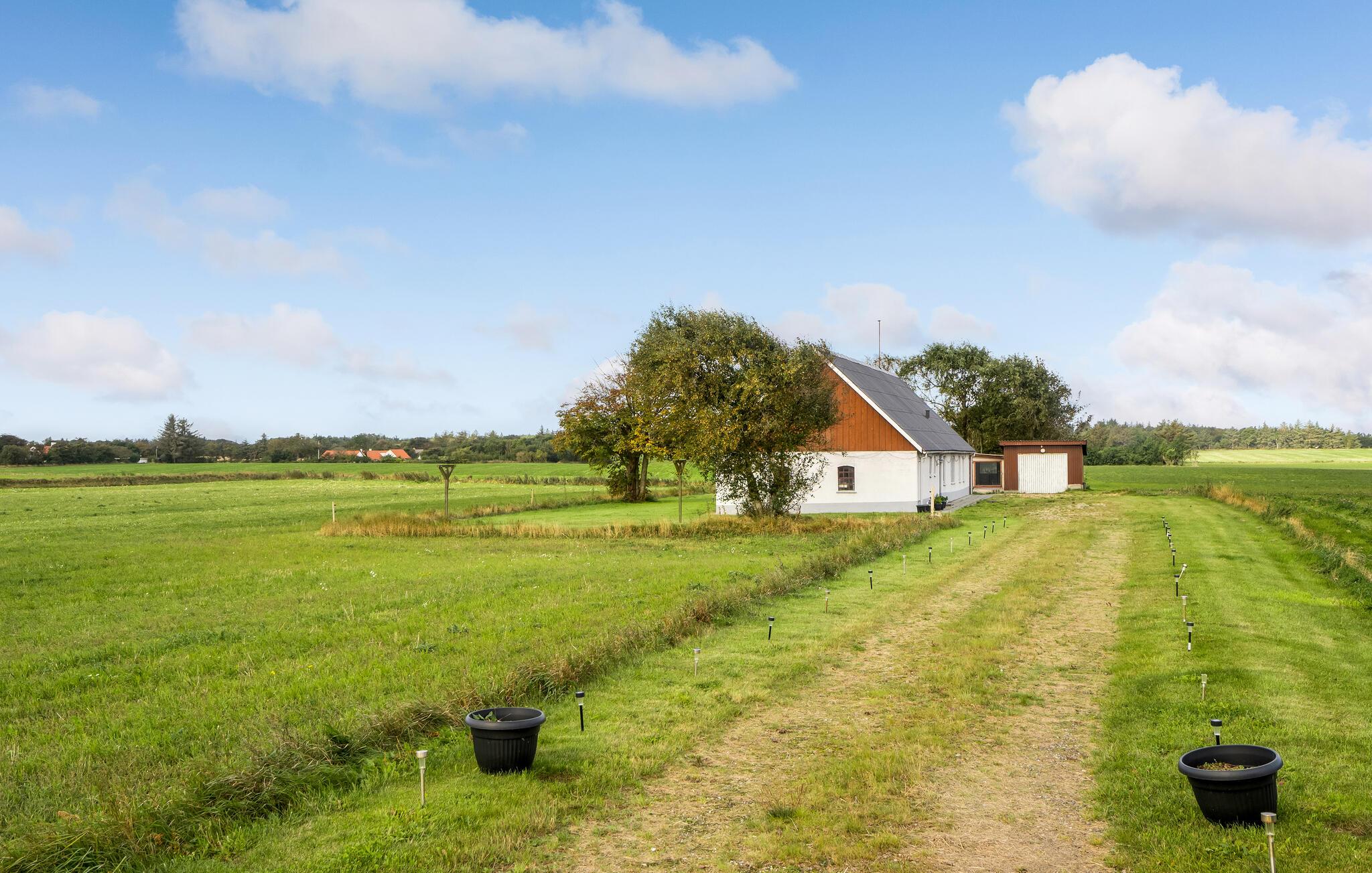Gården ligger på en stor naturgrund ud til åbent landskab og vindbøjede træer. Her er der masser af plads til, at børn og hunde kan boltre sig, mens I nyder en kop kaffe i solskinnet.