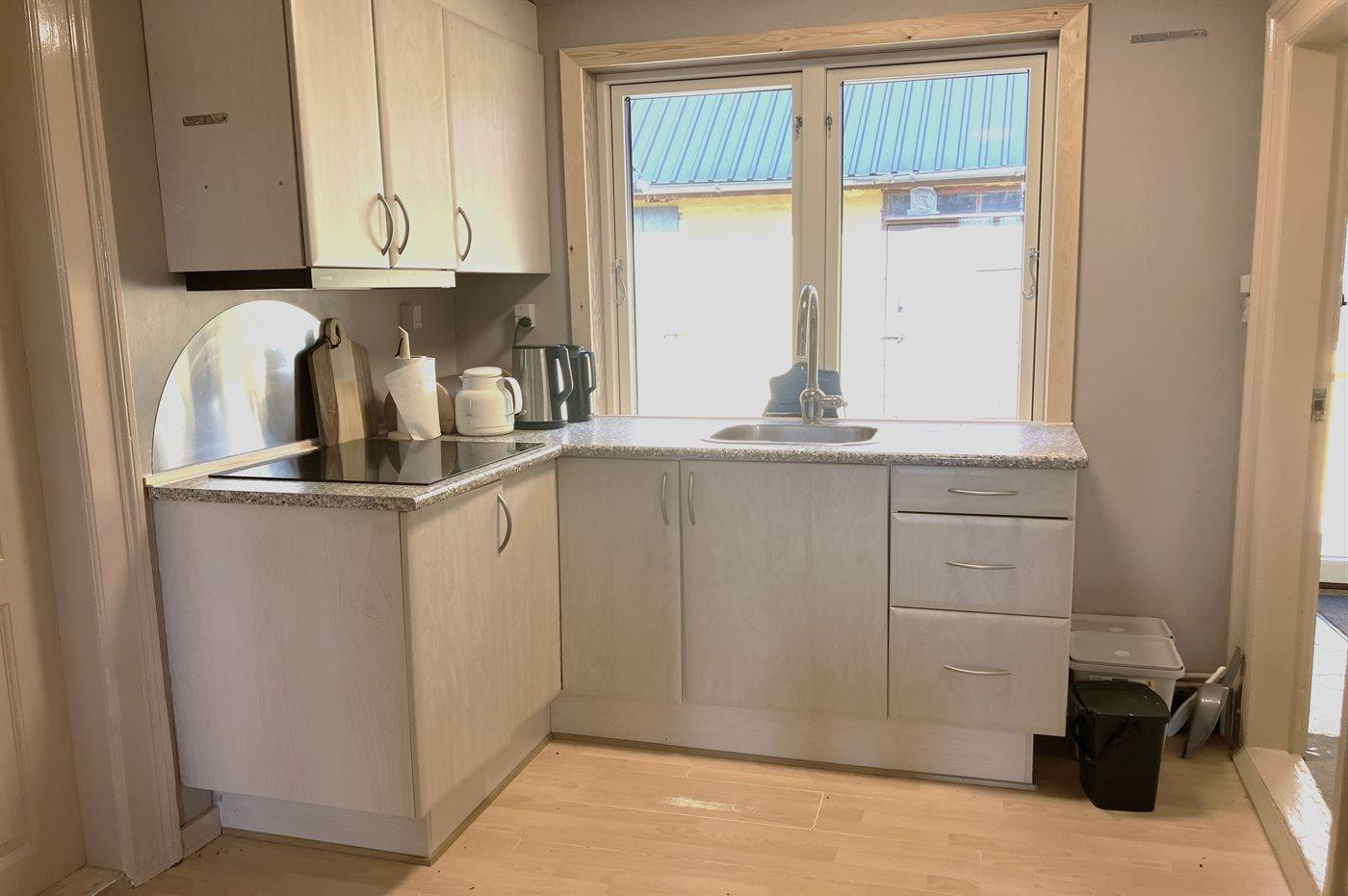 Køkkenet er udstyret med 1 køleskab. Der er 4 keramiske kogeplader, varmluftovn, mikrobølgeovn.