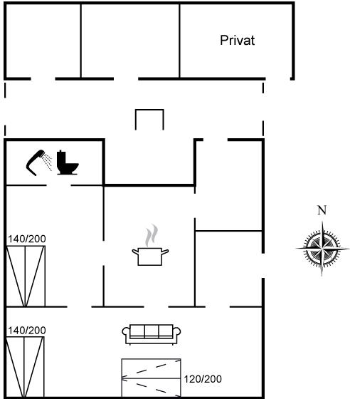 Der er i alt 1 soveværelse. Sovepladserne fordeler sig på: 4 sovepladser i dobbeltsenge. 2 sovepladser i sovesofa (dobbelt). 4 af disse sovepladser befinder sig i stuen. Derudover er der 2 stk. barnesenge.