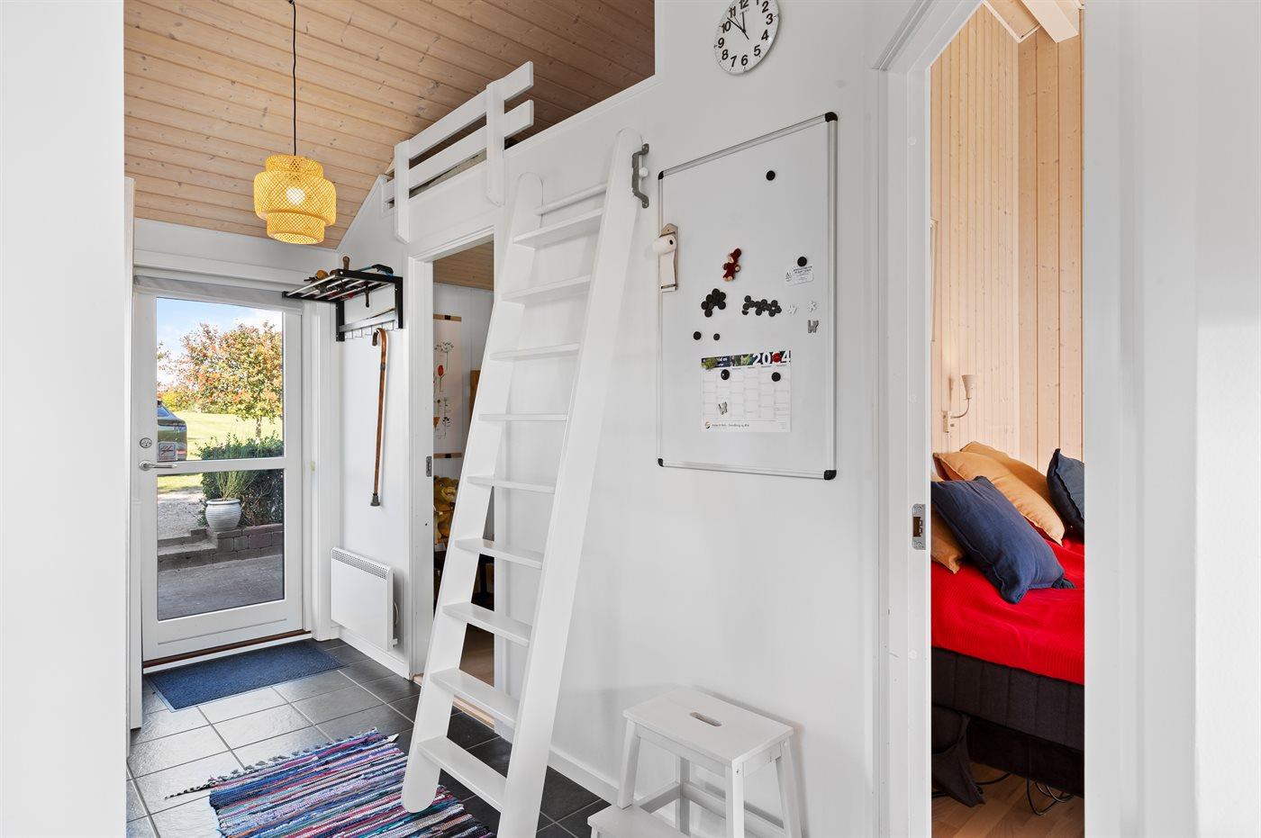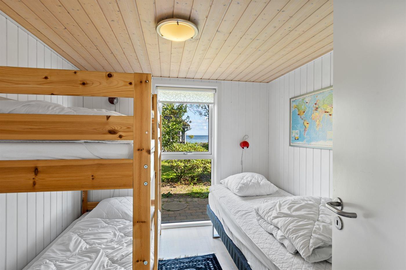 Der er i alt 2 soveværelser. Sovepladserne fordeler sig på: 2 sovepladser i dobbeltseng. 1 soveplads i enkeltseng. 2 sovepladser i køjeseng. Derudover er der 1 stk. barneseng.