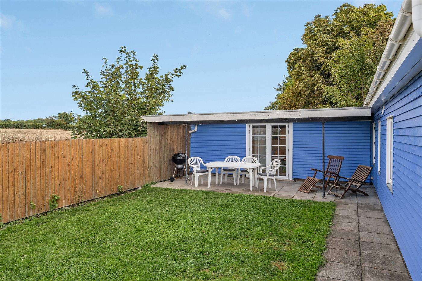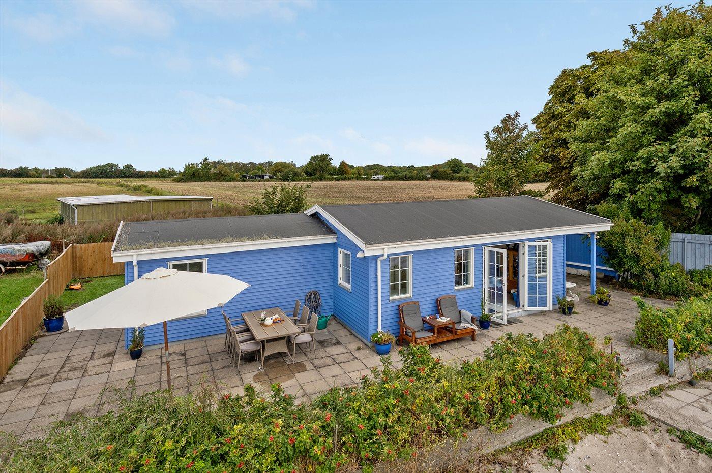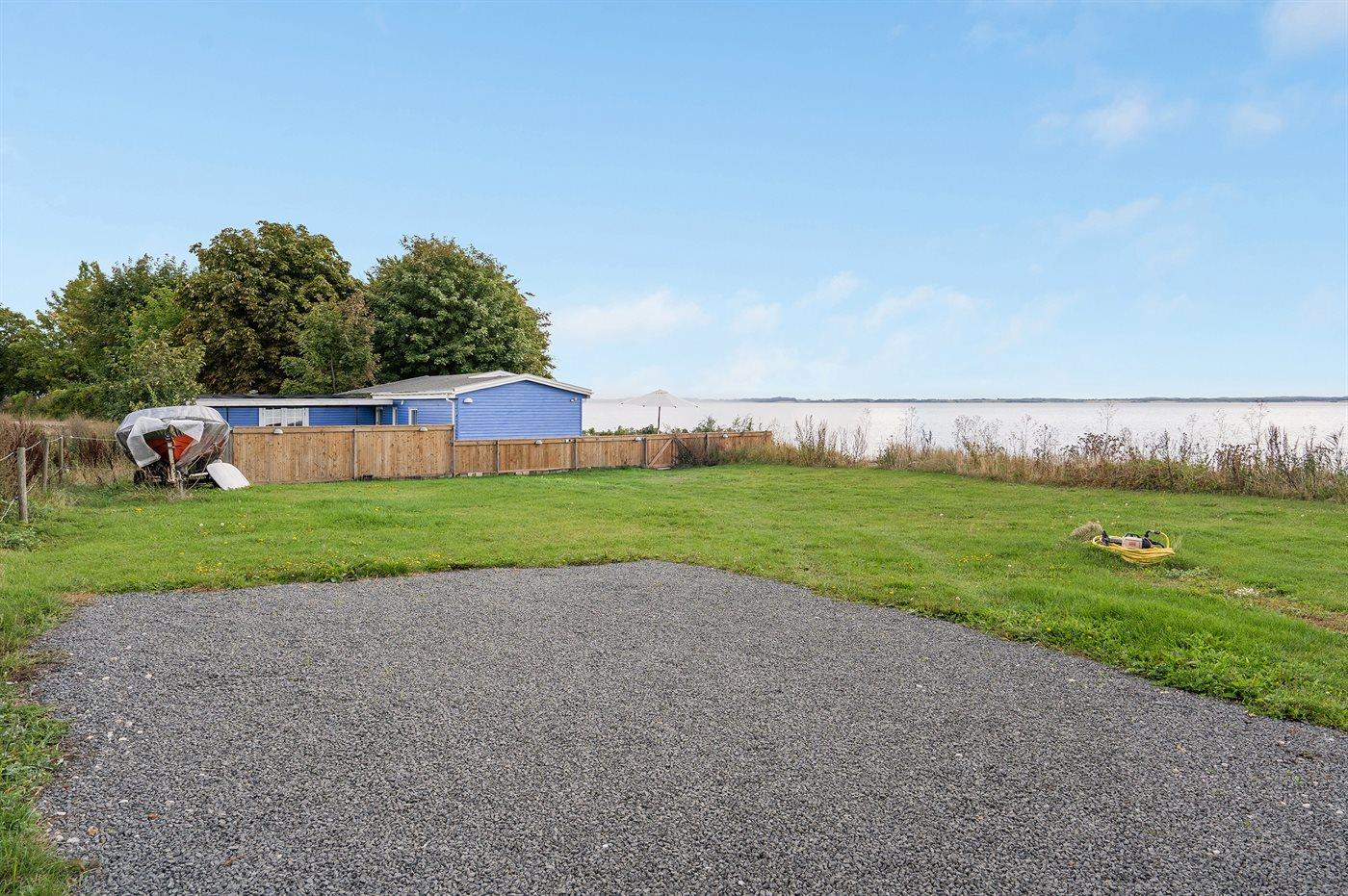 Fra det skønne ugenerte terrasseområde foran huset er der direkte adgang til stranden. Bag huset er der have og overdækket terrasse, og grunden omkring huset er lukket, så hunde og små børn kan færdes frit. Ved siden af huset, ud til vandet, er der et fælles grønt område, som frit kan benyttes.