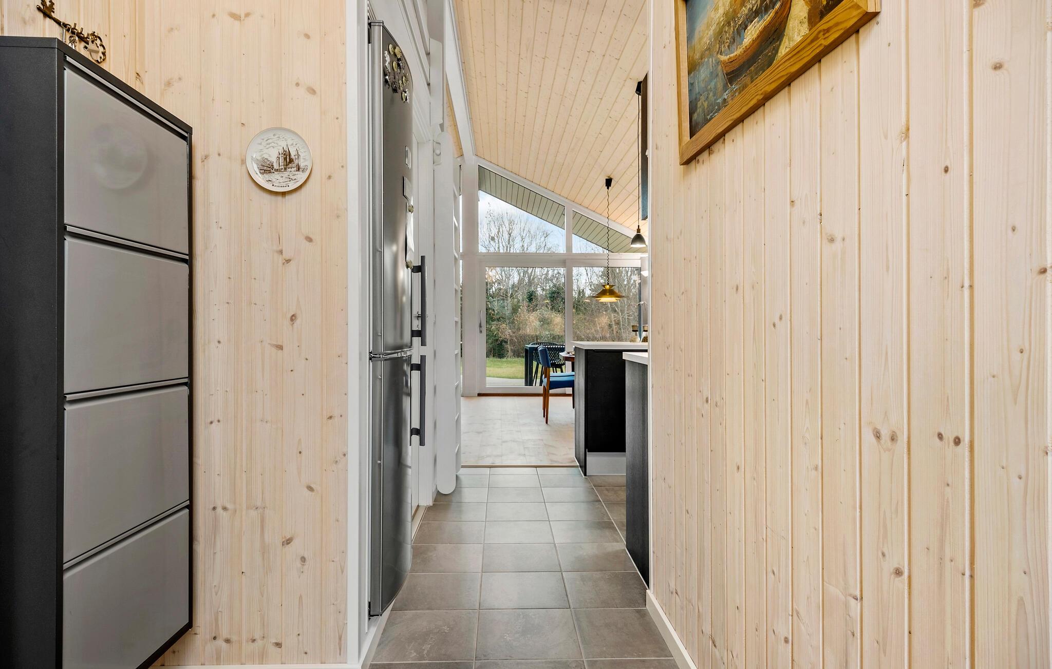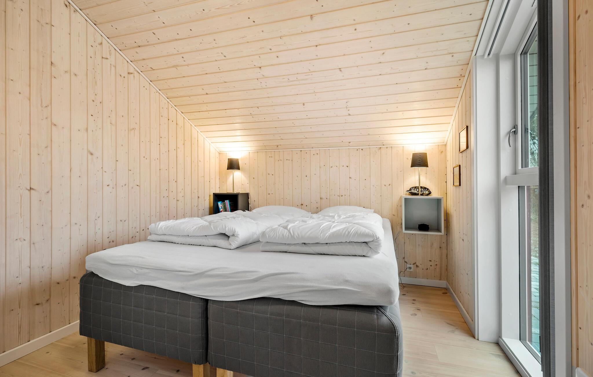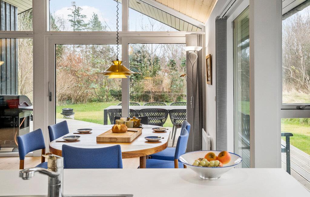 Fordyb jer i det stilfulde interiør i dette rummelige feriehus og føl jer straks hjemme. Tilbered jeres livretter i det elegante køkken og nyd jeres måltider i den lyse spiseplads med udsigt til det grønne. Afslut aftenen med en film i den hyggelige stue eller et sjovt brætspil.