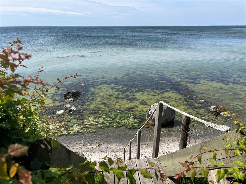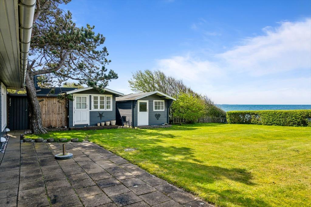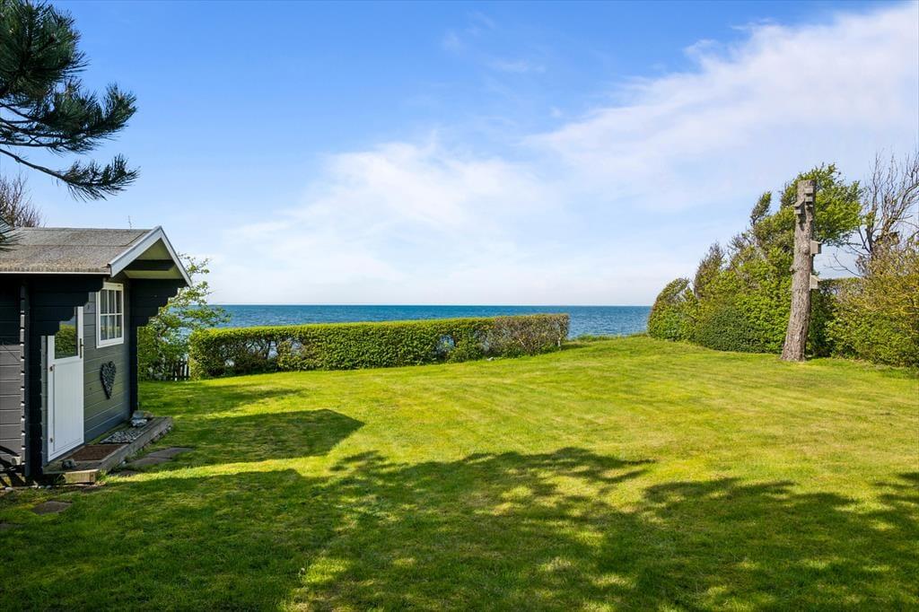 Sommerhuset er omkranset af en dejlig have med græsplæne og trappe direkte ned til vandet. Fra den ene stue er der direkte udgang til terrassen og her kan I nyde de lune dage og aftener. Her kan I være ugenert og nyde at have tid til at være sammen om dagens første eller sidste måltid. Her finder I både plads til hygge, afslapning og natureventyr, og trappen ned til vandet, gør det nemt at bade. Grunden er ikke indhegnet ned mod vandet.