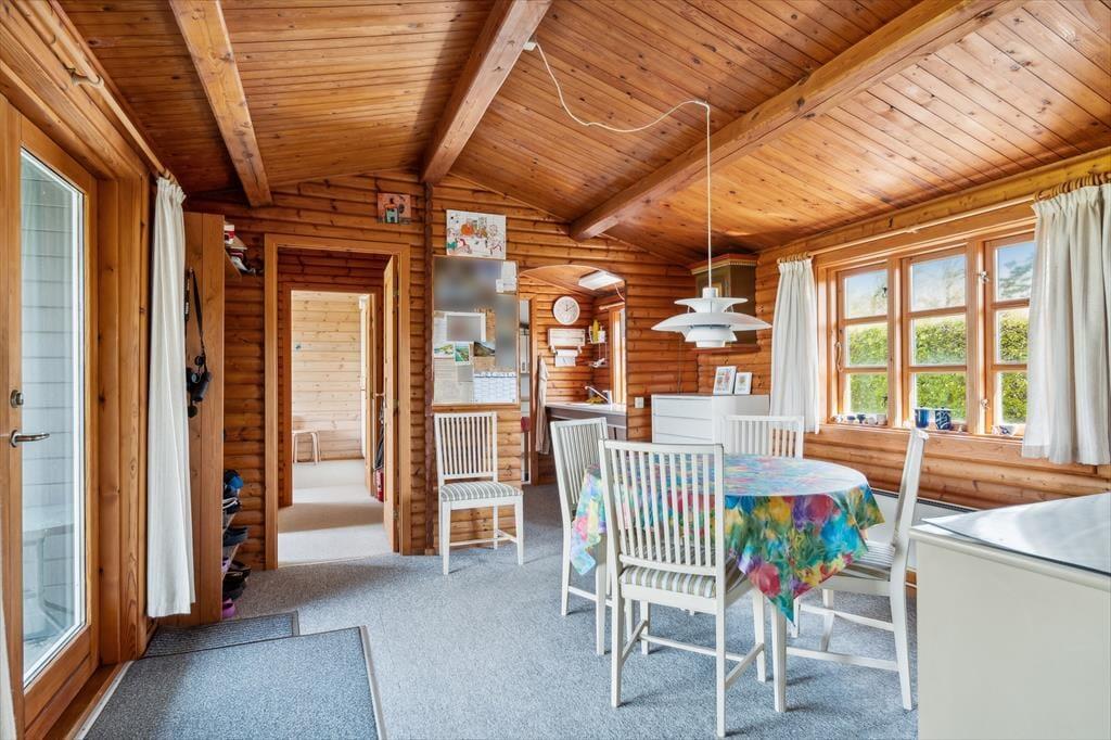 Her er åben forbindelse mellem køkken og stuer og I kan være sammen, imens I laver mad og børnene måske tegner eller spiller ved spisebordet. I stuen kan I sidde i hjørnesofaen og hygge foran brændeovnen og nyde udsigten til havet. Her er TV og Wi-Fi til jeres teenager og huset har 2 gode soveværelser, et med dobbeltseng og 1 med enkeltseng og udenfor er der et godt anneks med en dobbeltseng. Så her er plads til jer alle og mulighed for at trække sig tilbage og læse en god bog eller tage en lur. Huset har 1 badeværelse og i bryggerset er der vaskemaskine og fryser.