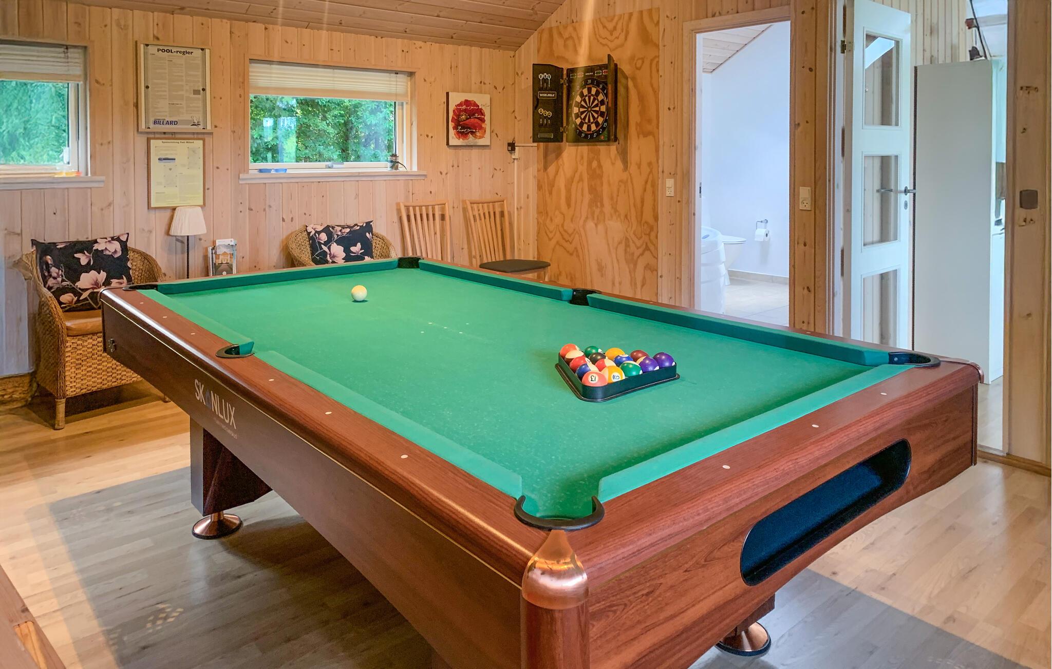Jeres indbydende hus byder jer velkommen på en rummelig grund i idylliske omgivelser. Allerede når I vågner, kan I nyde den smukke udsigt. Fra opholdsområdet har I et flot blik over landskabet. Efter dagens oplevelser og en tur i saunaen kan I slappe af på sofaen ved brændeovnen, lægge planer for kommende udflugter over et fælles måltid og nyde tiden sammen. Efter aftensmaden kan I tage et spil billard.