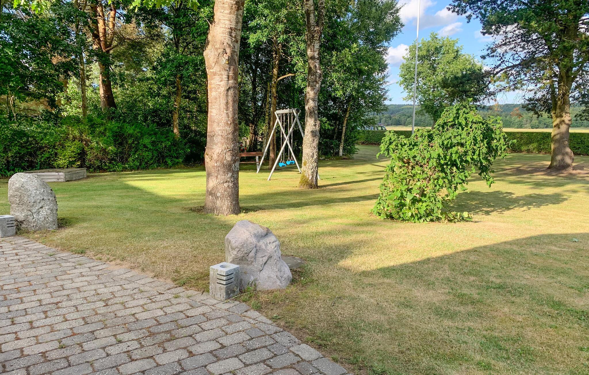 På den store grund kan I nyde solen i fulde drag og se jeres børn gynge. Efter en dejlig dag kan I slappe af på terrassen med et godt glas vin og betragte den fascinerende stjernehimmel.