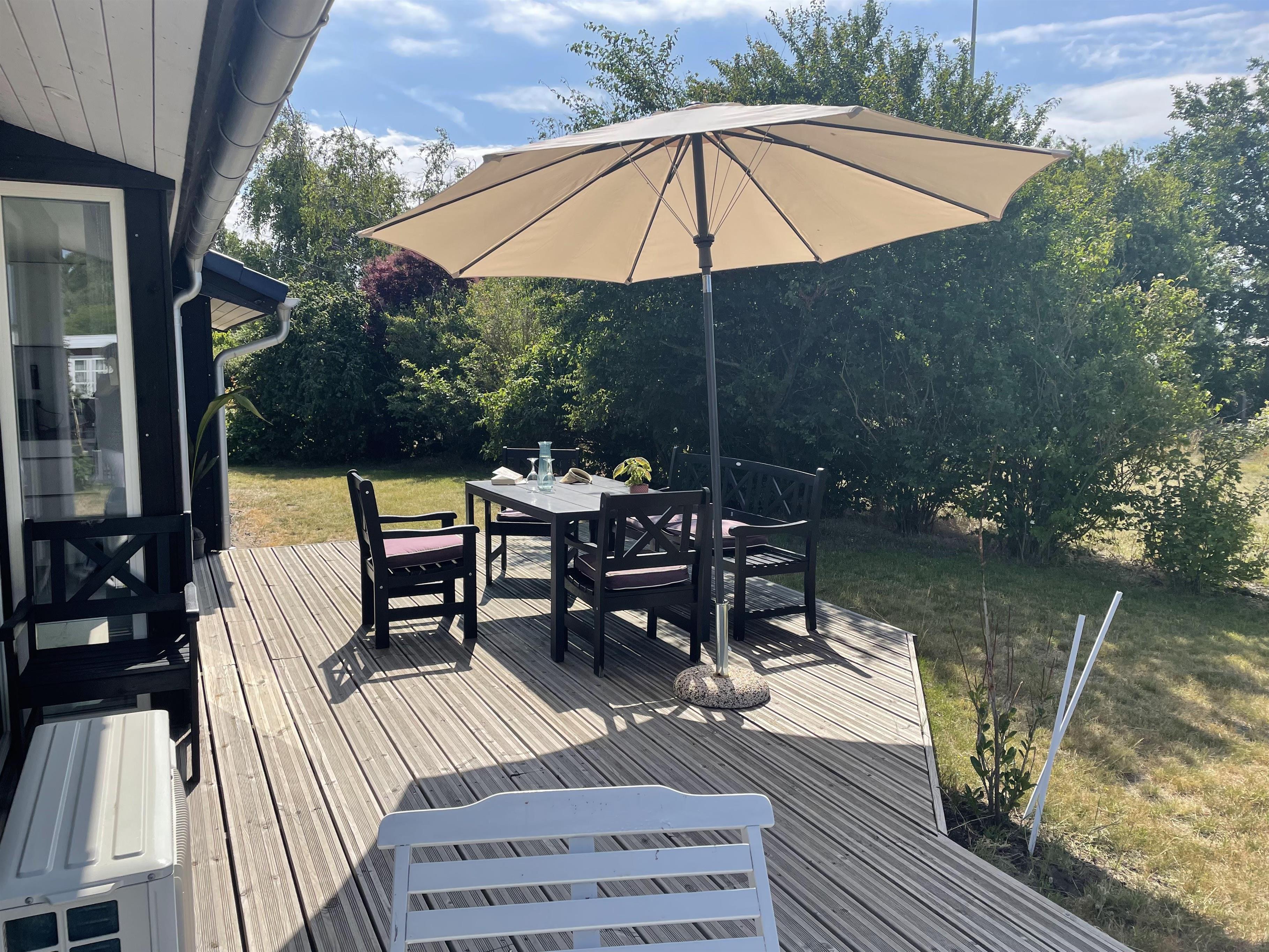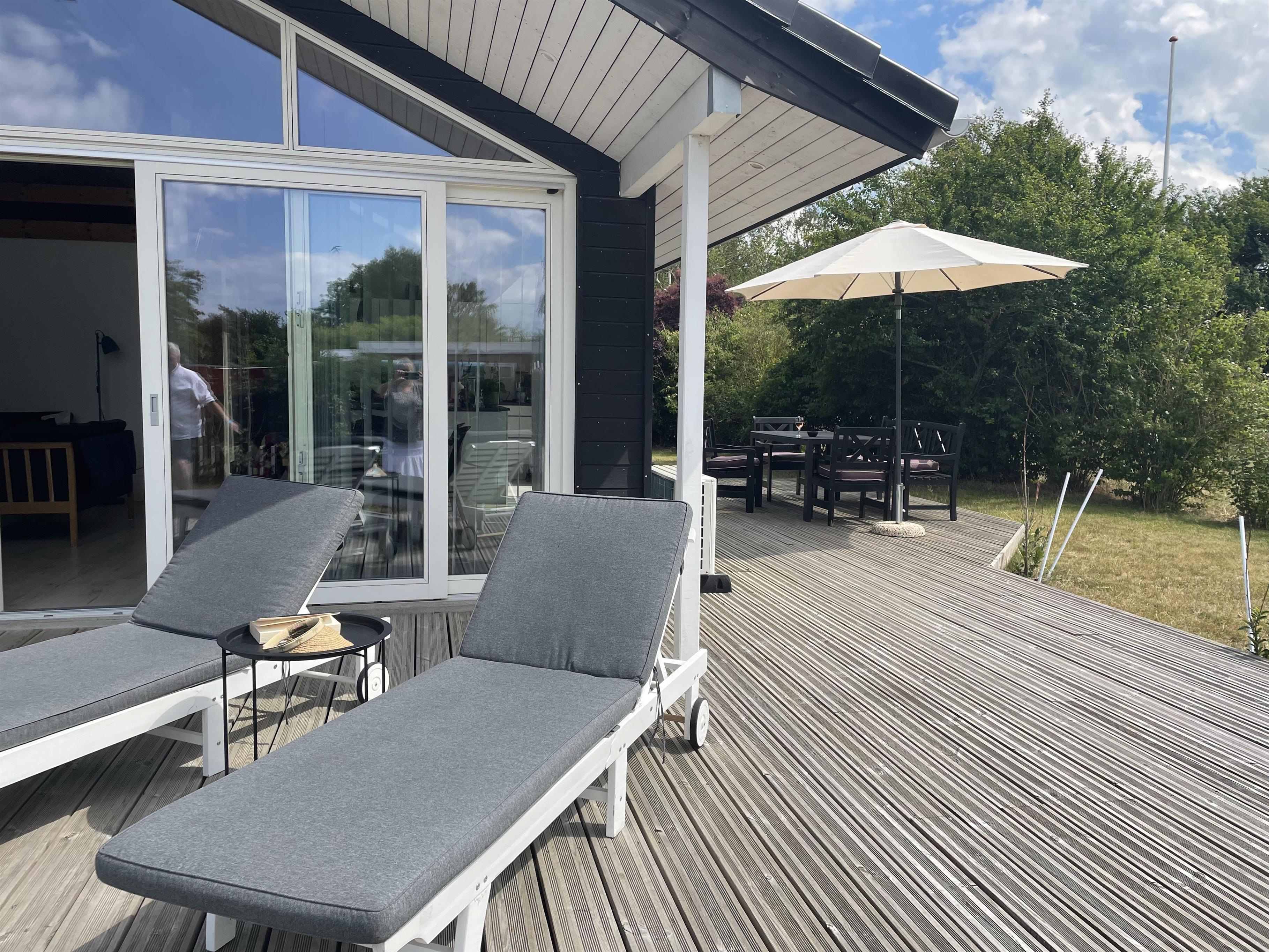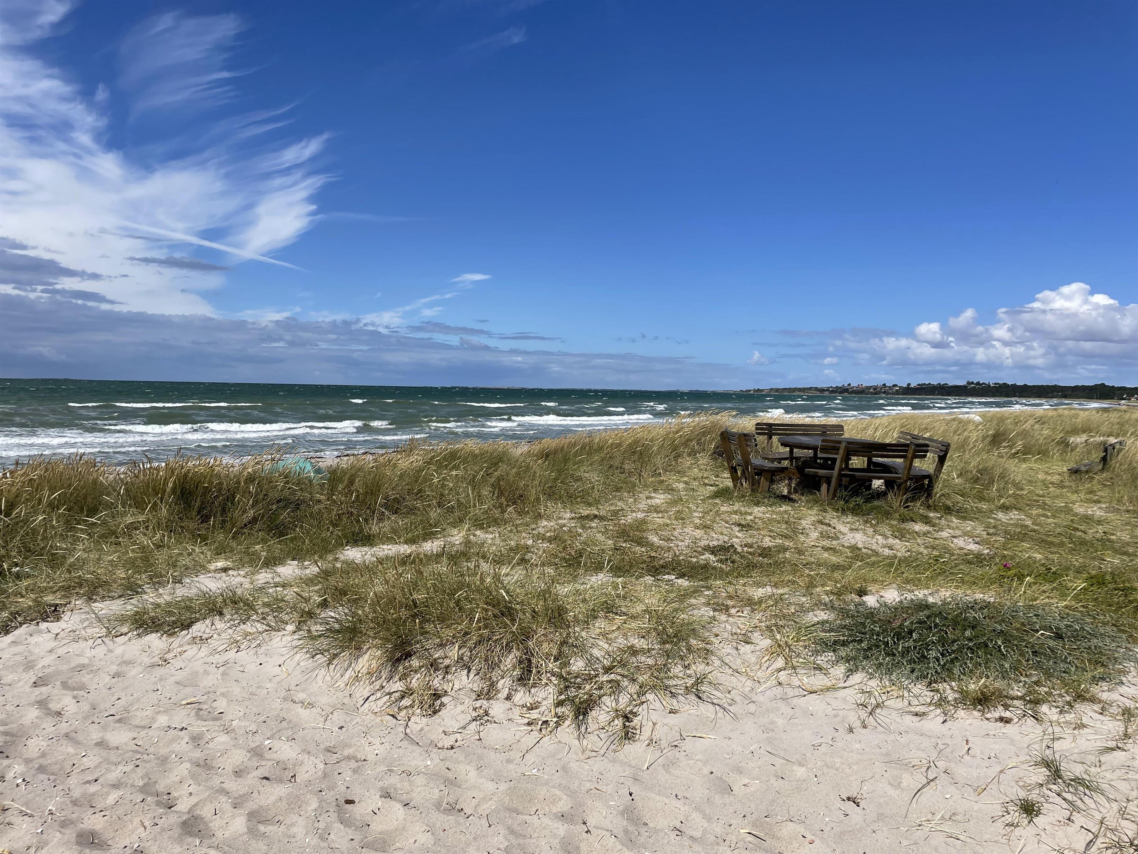 Huset ligger ved Kongsmarks Strandvej, helt tæt på ishus, restauranter, strand mv., og fra den ene af terrasserne kan man følge med i den lokale trafik. Der er endnu en terrasse bag huset, og denne er helt ideel til morgenmaden, siden kan man rykke rundt om huset og få mere sol.