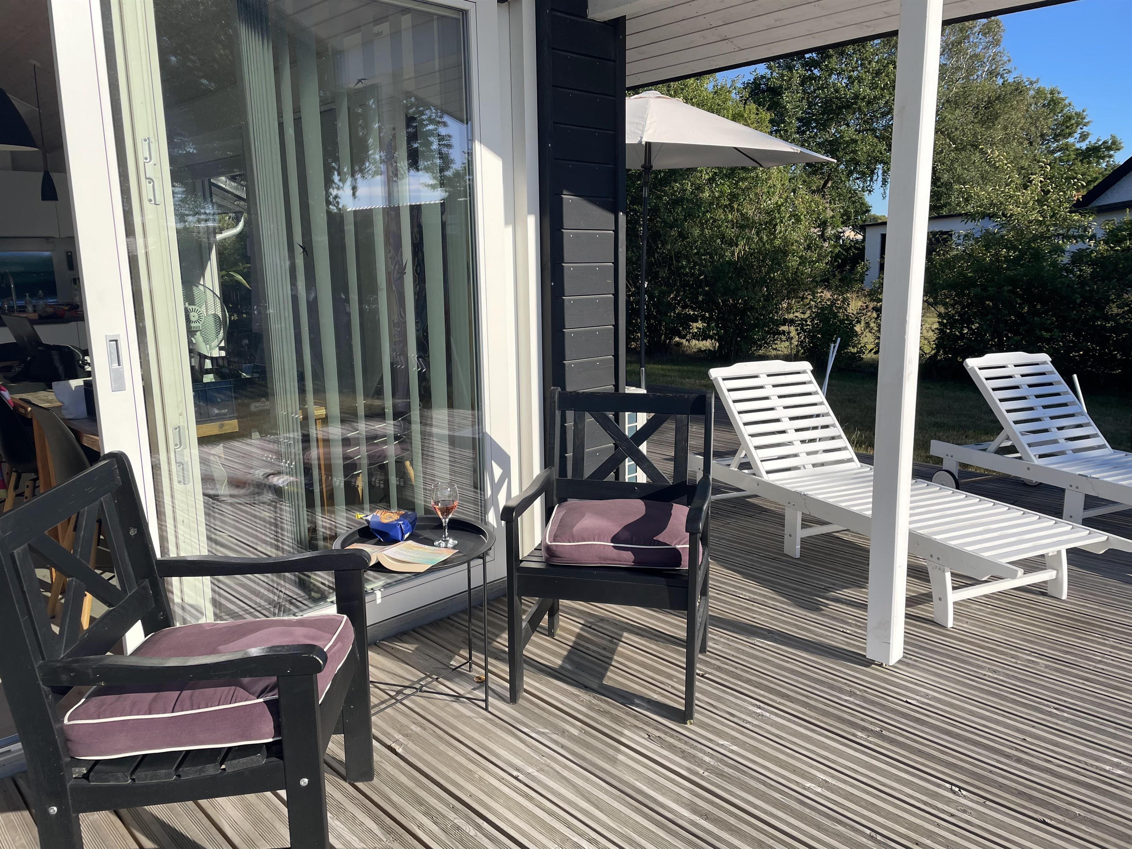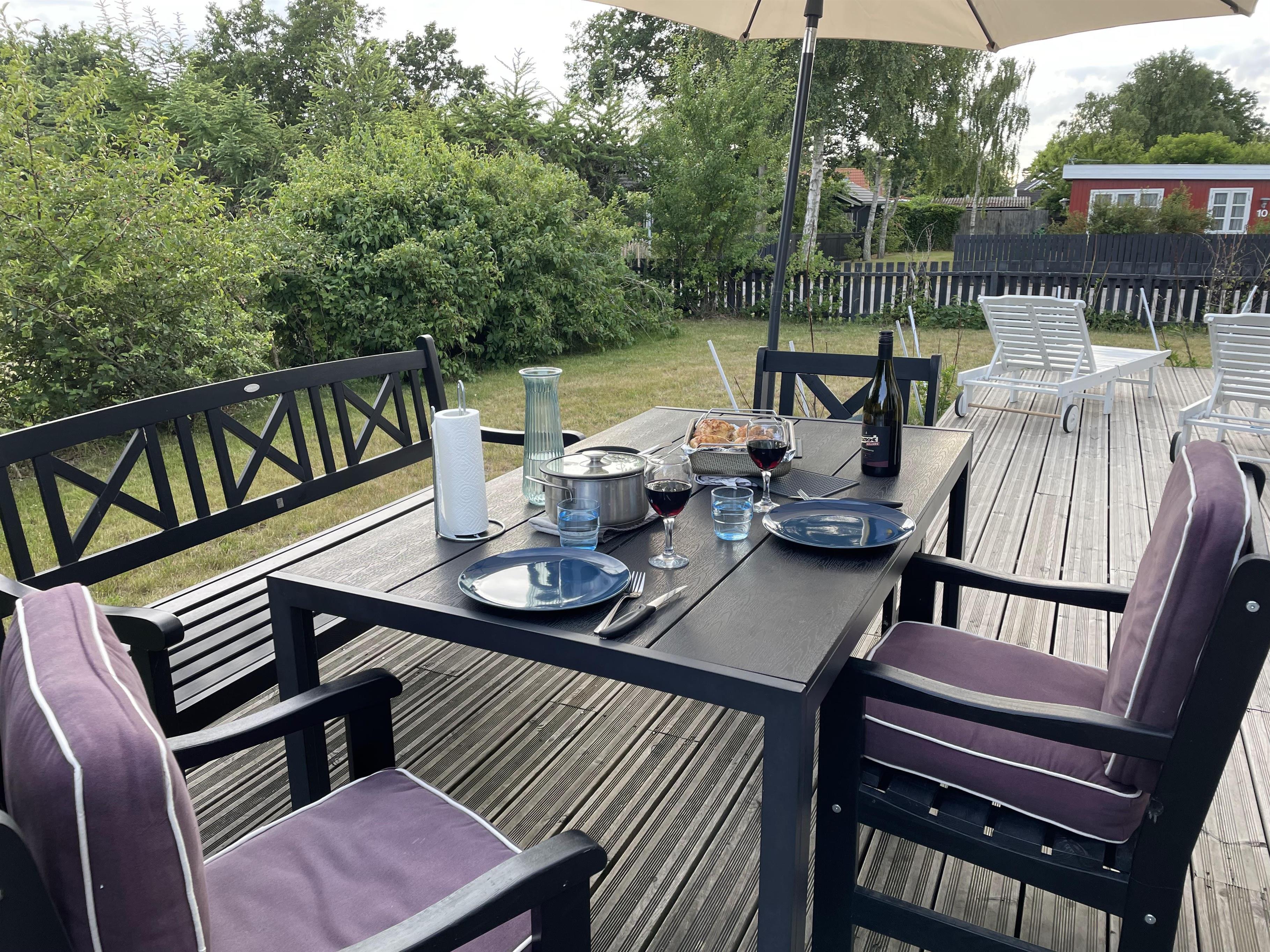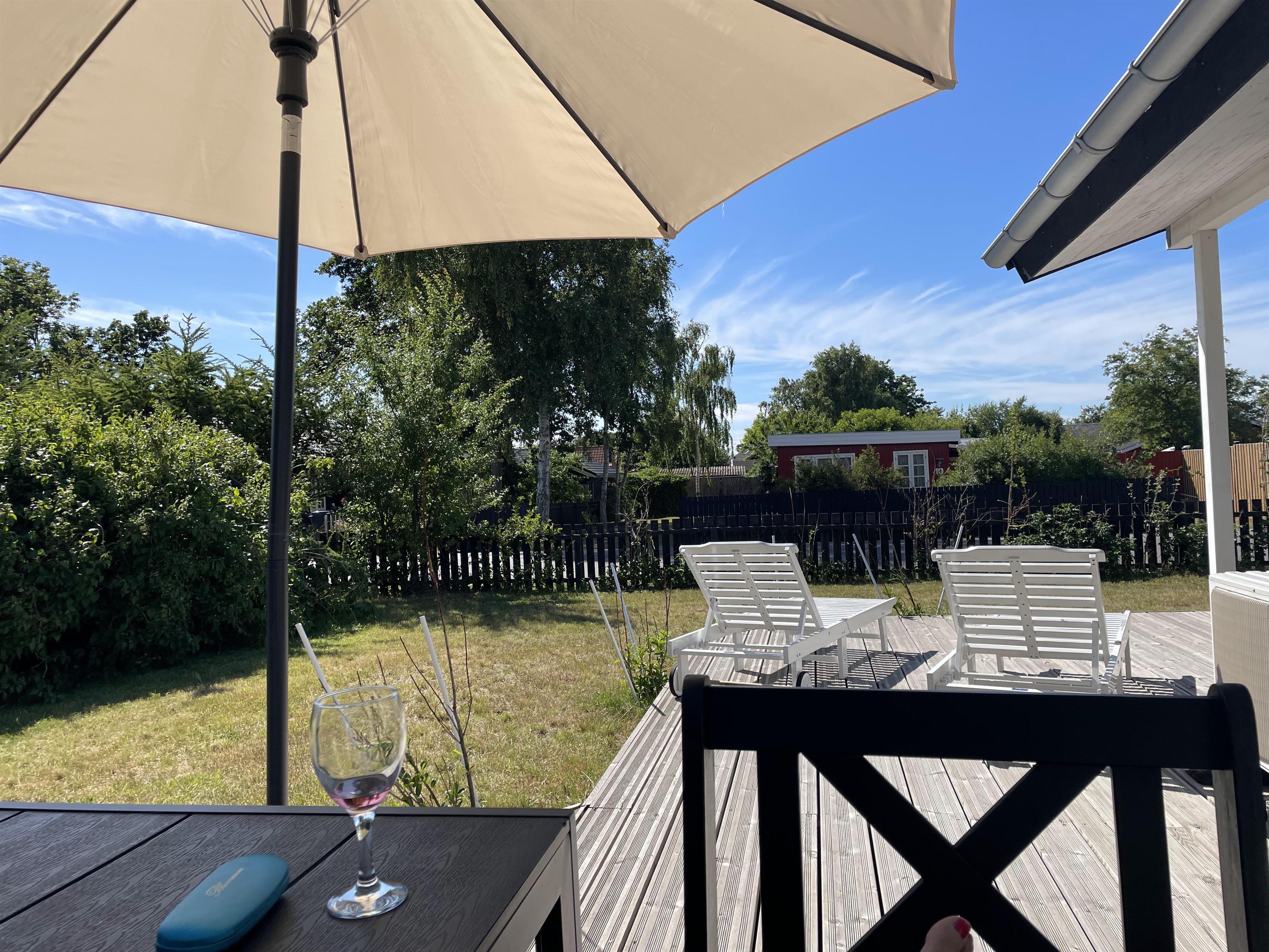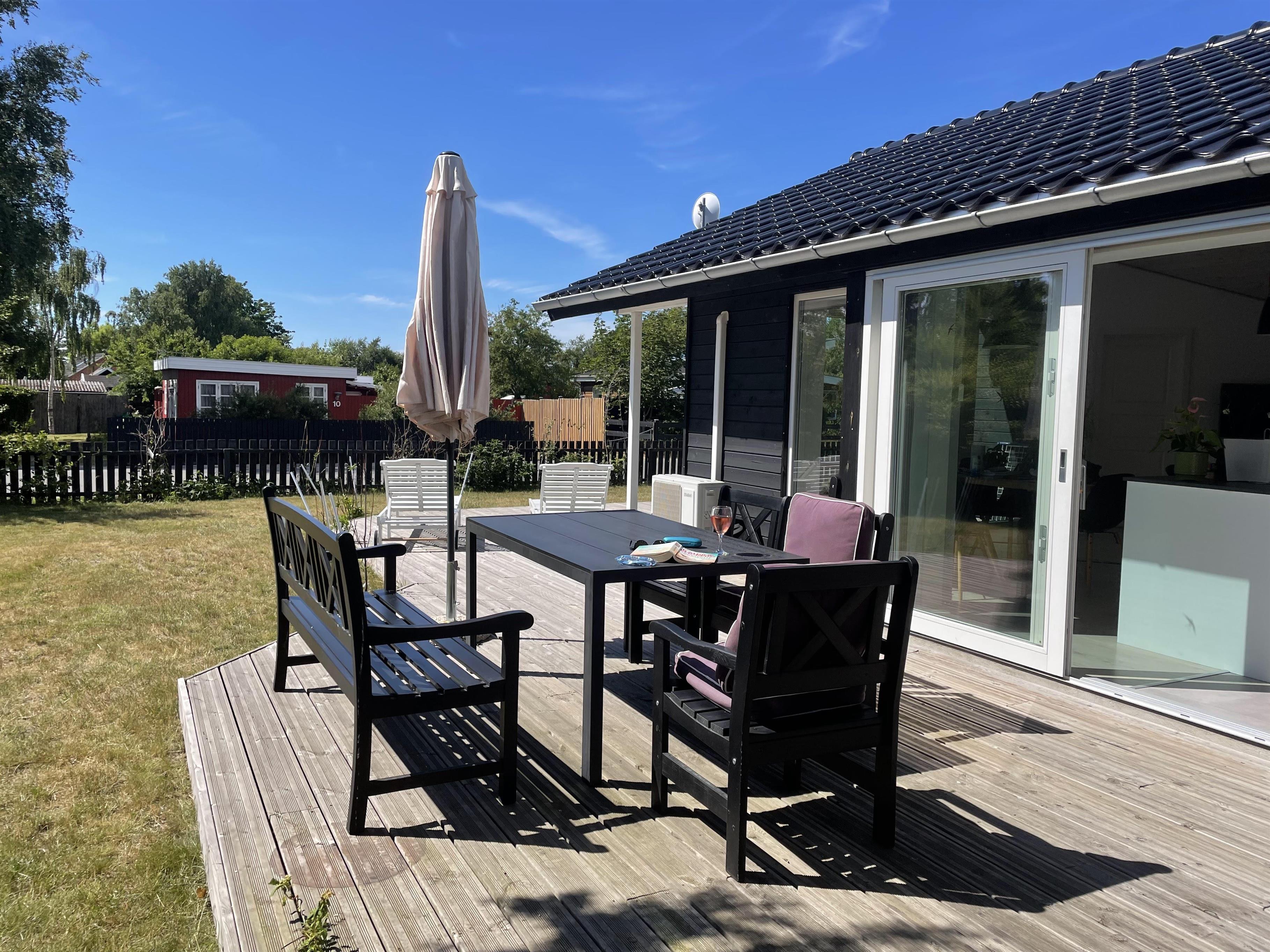 Huset ligger ved Kongsmarks Strandvej, helt tæt på ishus, restauranter, strand mv., og fra den ene af terrasserne kan man følge med i den lokale trafik. Der er endnu en terrasse bag huset, og denne er helt ideel til morgenmaden, siden kan man rykke rundt om huset og få mere sol.