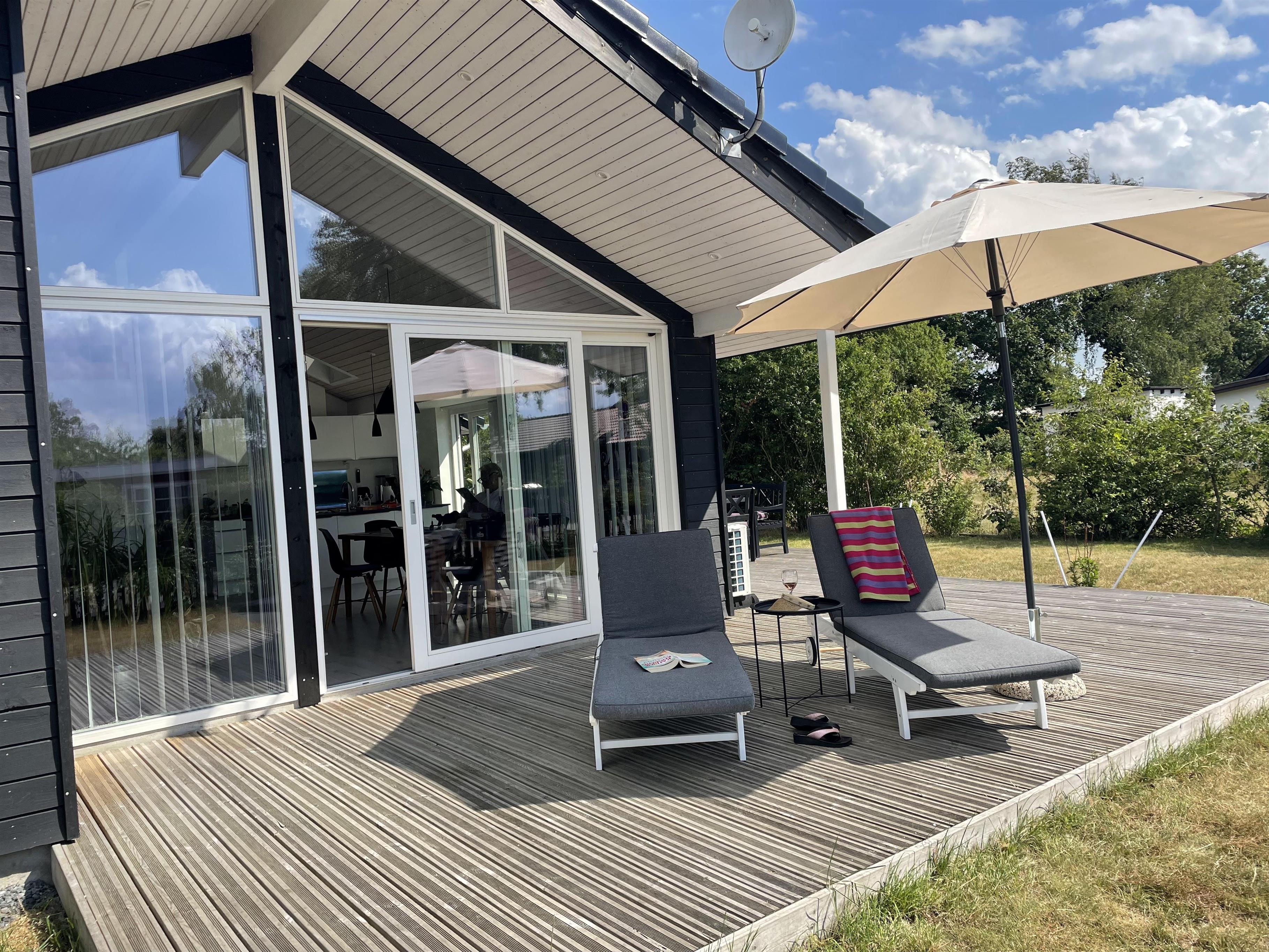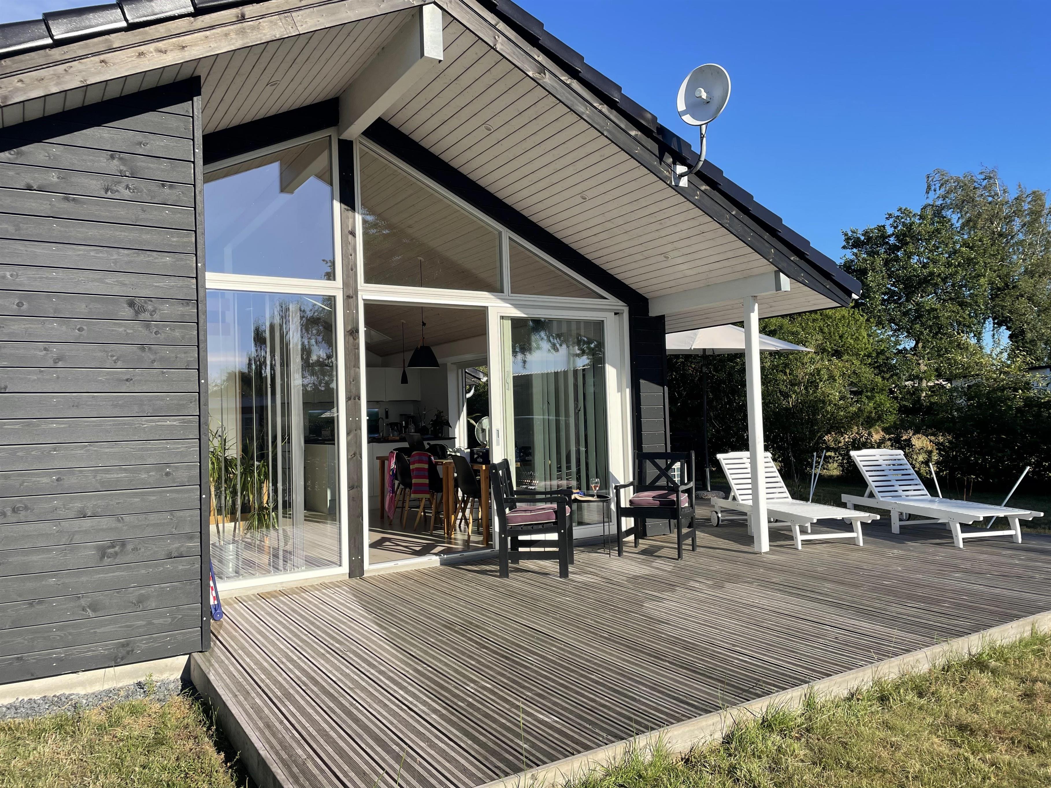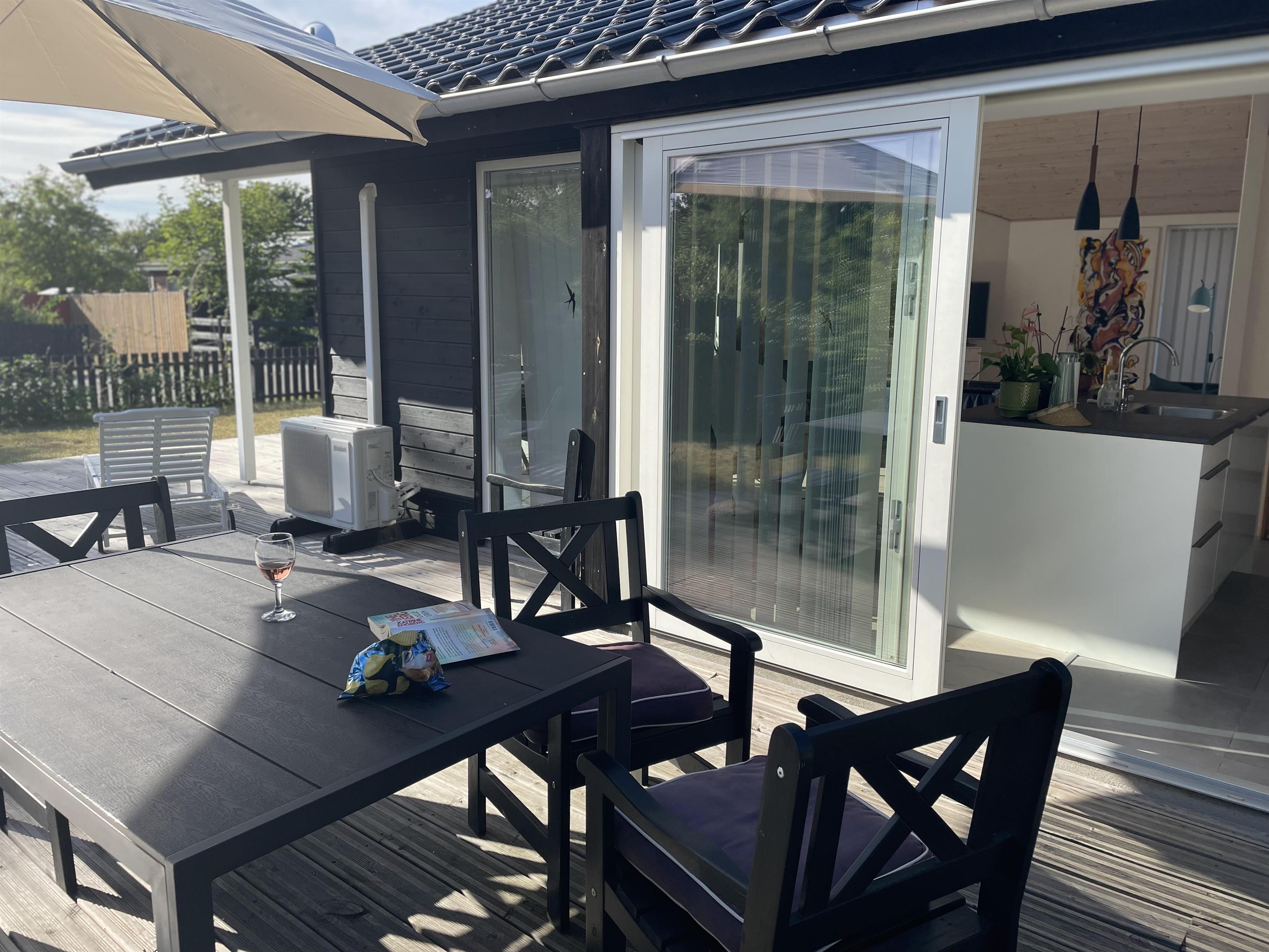 Dette skønne, nye hus er helt fantastisk godt og dejligt indrettet. Her er eksempelvis elevationssenge i de to af soveværelserne, en meget stor hems og endnu et værelse med dobbeltseng. Køkken og stue er forbundet, og der er direkte udgang fra køkken til den store terrasse. Her er gulvvarme i hele huset via varmepumpe, fjernsyn med rigtig mange kanaler, frit Wi-Fi og naturligvis opvaskemaskine samt en moderne, kombineret vaskemaskine/tørretumbler.
