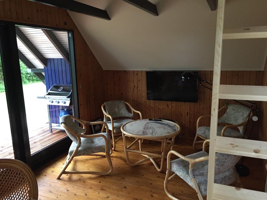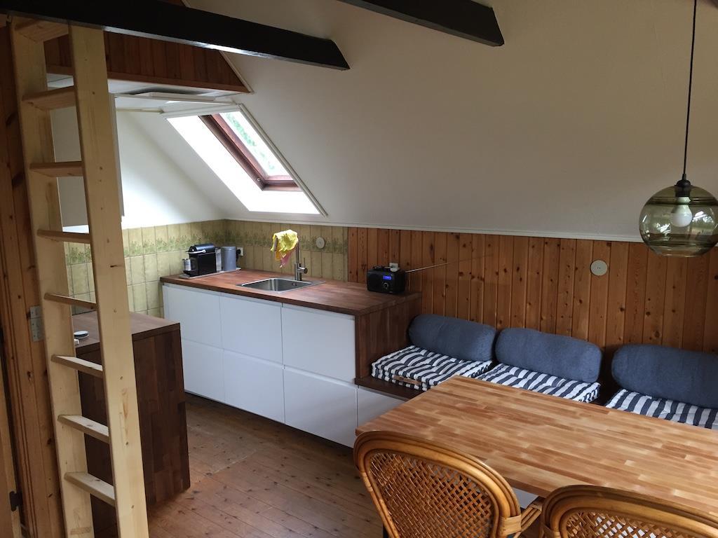 Der er to soveværelser. Det ene er indrettet med en enkeltseng og det andet har en sovesofa med to sovepladser. Der er også mulighed for en opredning. Endelig er der en hems med to sovepladser, så I kan indrette jer, så som det passer bedst.