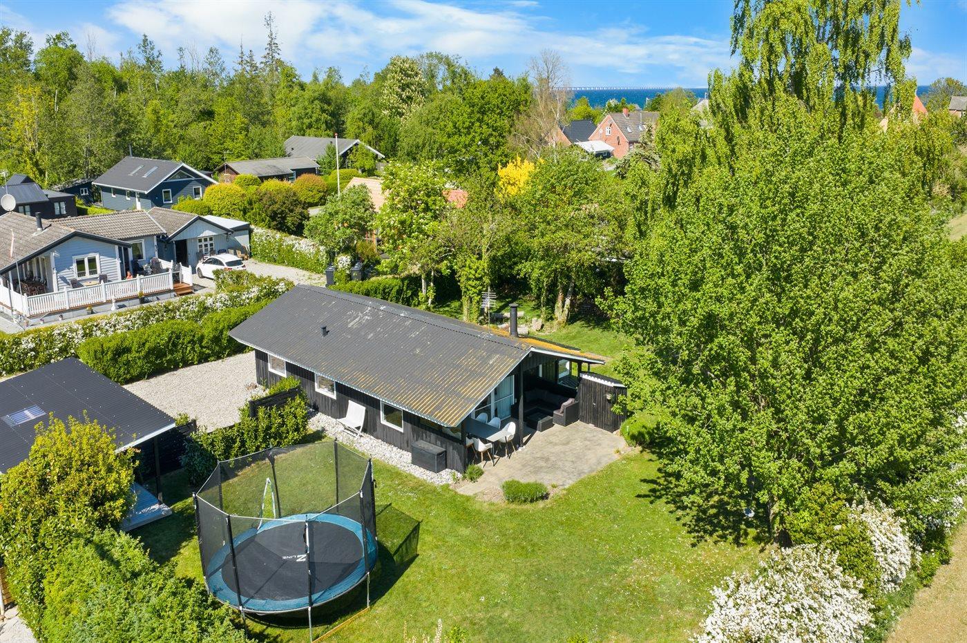Ferieboligen er beliggende på en 930 m² stor havegrund. Der er 200 m til havet. Der er en badebro i nærheden. Nærmeste forretning er beliggende i en afstand af 7500 m. Til ferieboligen hører åbent terrasseareal. Desuden er der overdækket terrasse. Gynge. Sandkasse. Trampolin. Legetårn. Rutchebane. Fodboldmål. Bålsted. Grill til rådighed. Parkering ved ferieboligen.