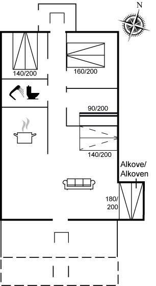 Bemærk, at der er flere forskellige sovemuligheder, da der ud over de 3 værelser også er sovesofa og en alkove i stuen. Men der må ikke overnatte mere end de 6 personer + 1 barn 0-3 år, som huset kan bookes til.