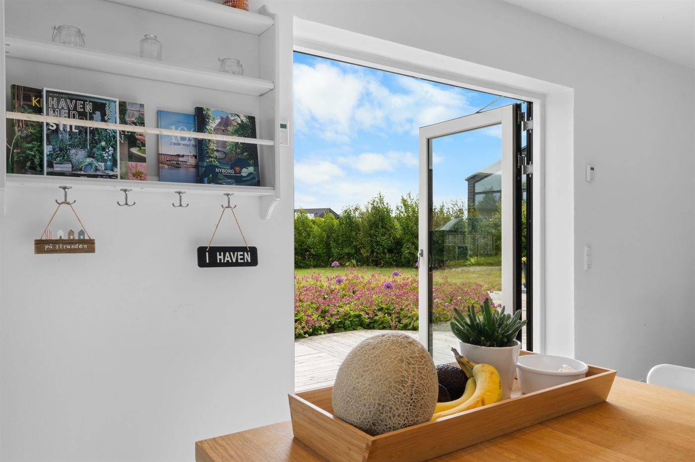 Huset ligger for enden af et lukket vænge, hvorfra der er udgang til marker og stisystem, som fører ned til vandet.