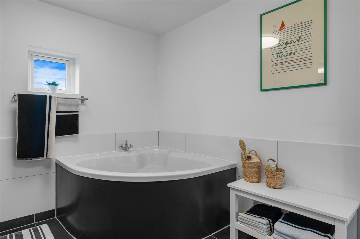 Der er 1 badeværelse med gulvvarme, bruseniche, badekar og toilet.