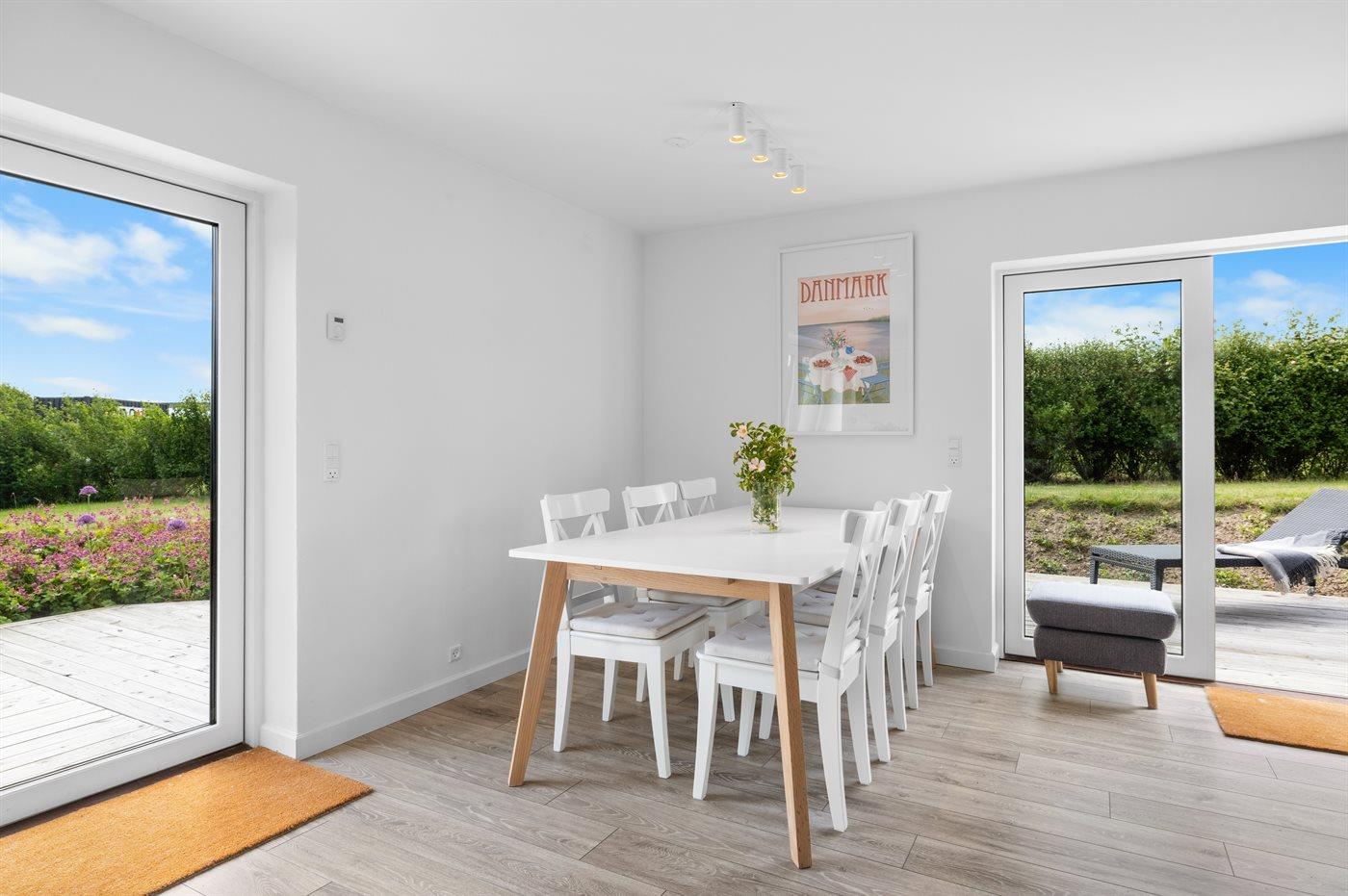Et skønt, nybygget sommerhus i 2 plan med flere dejlige terrasser, som fordeler sig omkring huset. Huset er lyst og nydeligt indrettet og har fra 1.salen og altanen en skøn udsigt ud over området og vandet.