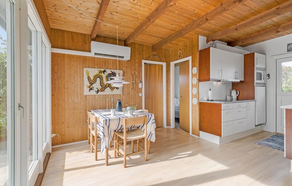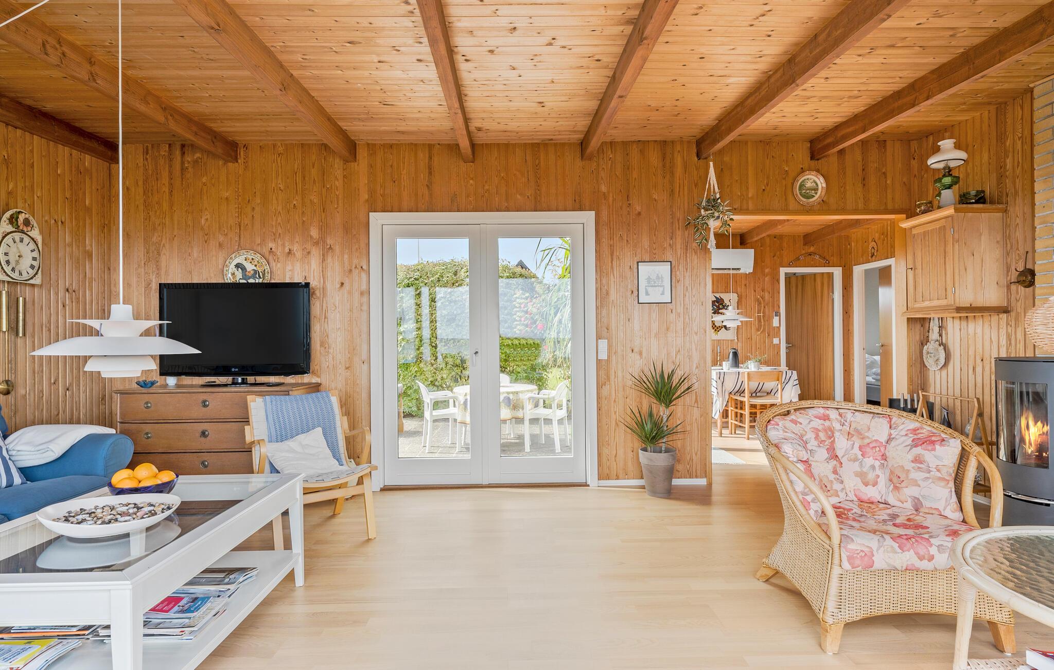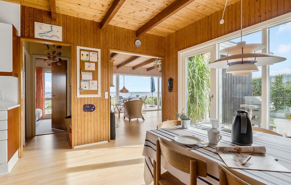 Der er fred, ro og en vidunderlig udsigt på denne grund, og samtidig får I en herlig base i dette gedigne sommerhus. Her kan alle sætte hverdagen på pause og koncentrere sig om at holde fri. Indendørs har huset en hyggelig atmosfære med træelementer i varme farver. Find sammen om spisebordet og nyd den skønne udsigt til haven, mens ilden buldrer stemningsfuldt i brændeovnen.