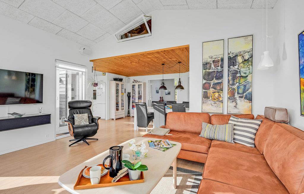 Dette attraktive, smagfuldt indrettede feriehus i skønne naturomgivelser indbyder til en dejlig ferie spækket med oplevelser. Store vinduer oplyser stuen med et naturligt lys og bidrager til en behagelig atmosfære. Hyg jer med fælles madlavning og kæmp imod hinanden i brætspilsdyster. Mens de små tegner eller lægger puslespil, kan de større spille bordtennis. Efter en dejlig dag på stranden kan I forkæle jer selv i spabadet! Flyt alle måltiderne udenfor på varme dage. På terrasserne kan I tilbringe mange hyggelige timer under åben himmel. Stranden finder I kun få hundrede meter herfra.