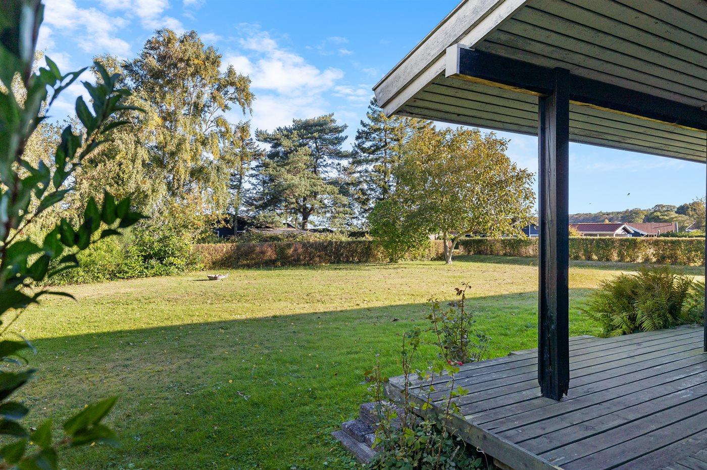 Ferieboligen er beliggende på en 1159 m² stor havegrund. Der er 250 m til havet. Der er en badebro i nærheden. Nærmeste forretning er beliggende i en afstand af 5100 m. Til ferieboligen hører åbent terrasseareal. Desuden er der overdækket terrasse. Grill til rådighed. Parkering ved ferieboligen.