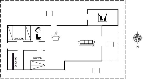 Sommerhuset egner sig til 6 personer samt 1 barn op til 3 år. Ferieboligen er på 70 m² og er bygget i 1972. I 2013 gennemgik ferieboligen en delvis renovering. Det er ikke tilladt at medbringe husdyr. Ferieboligen er udstyret med energibesparende luft til luft varmepumpe. Frysekapacitet på 30 liter. Der er desuden brændeovn. Til de små er der 1 stk. barnestol.