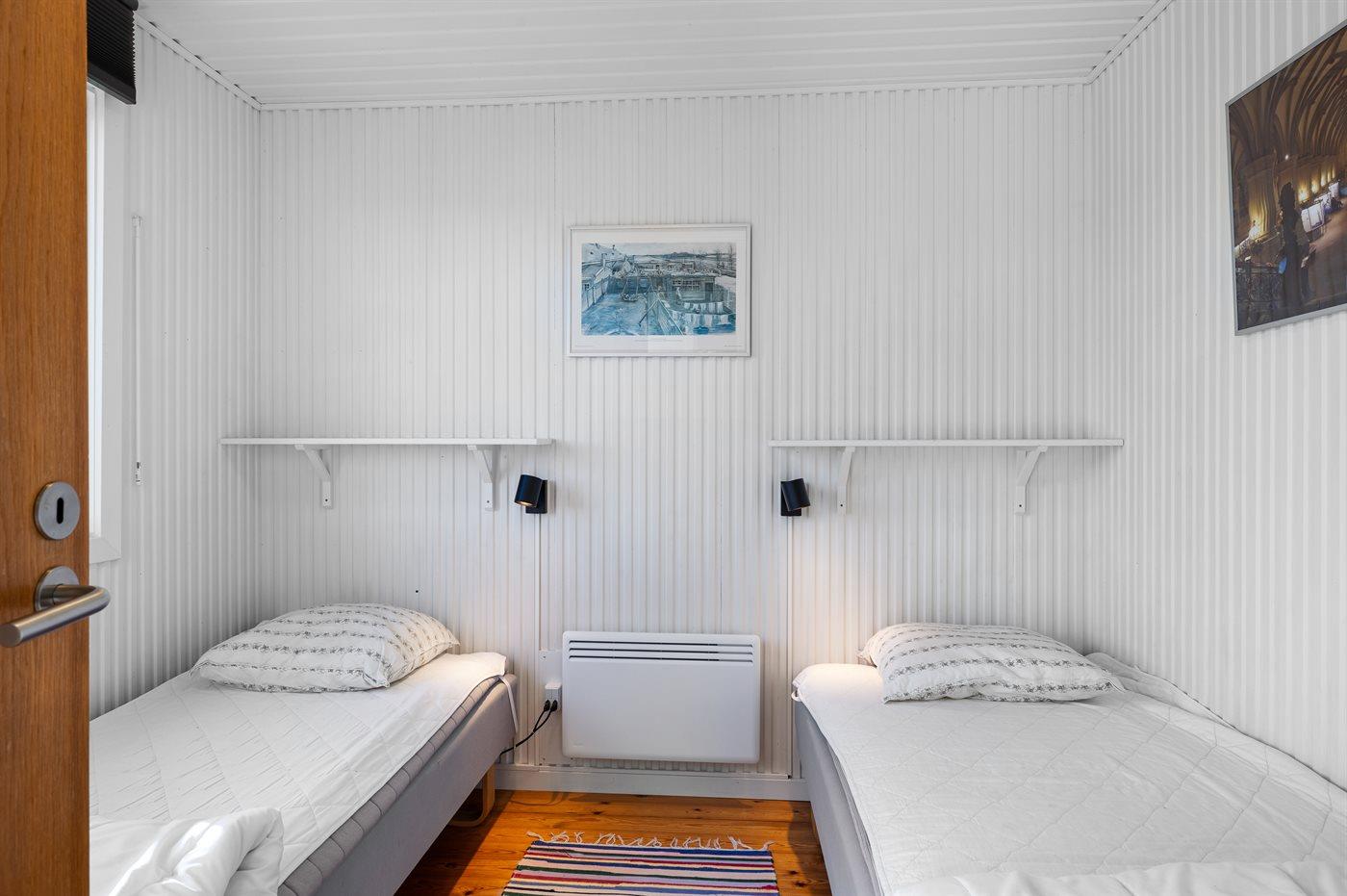 Der er i alt 3 soveværelser. Sovepladserne fordeler sig på: 2 sovepladser i dobbeltseng. 2 sovepladser i enkeltsenge. 2 sovepladser i køjeseng. Derudover er der 1 stk. barneseng.