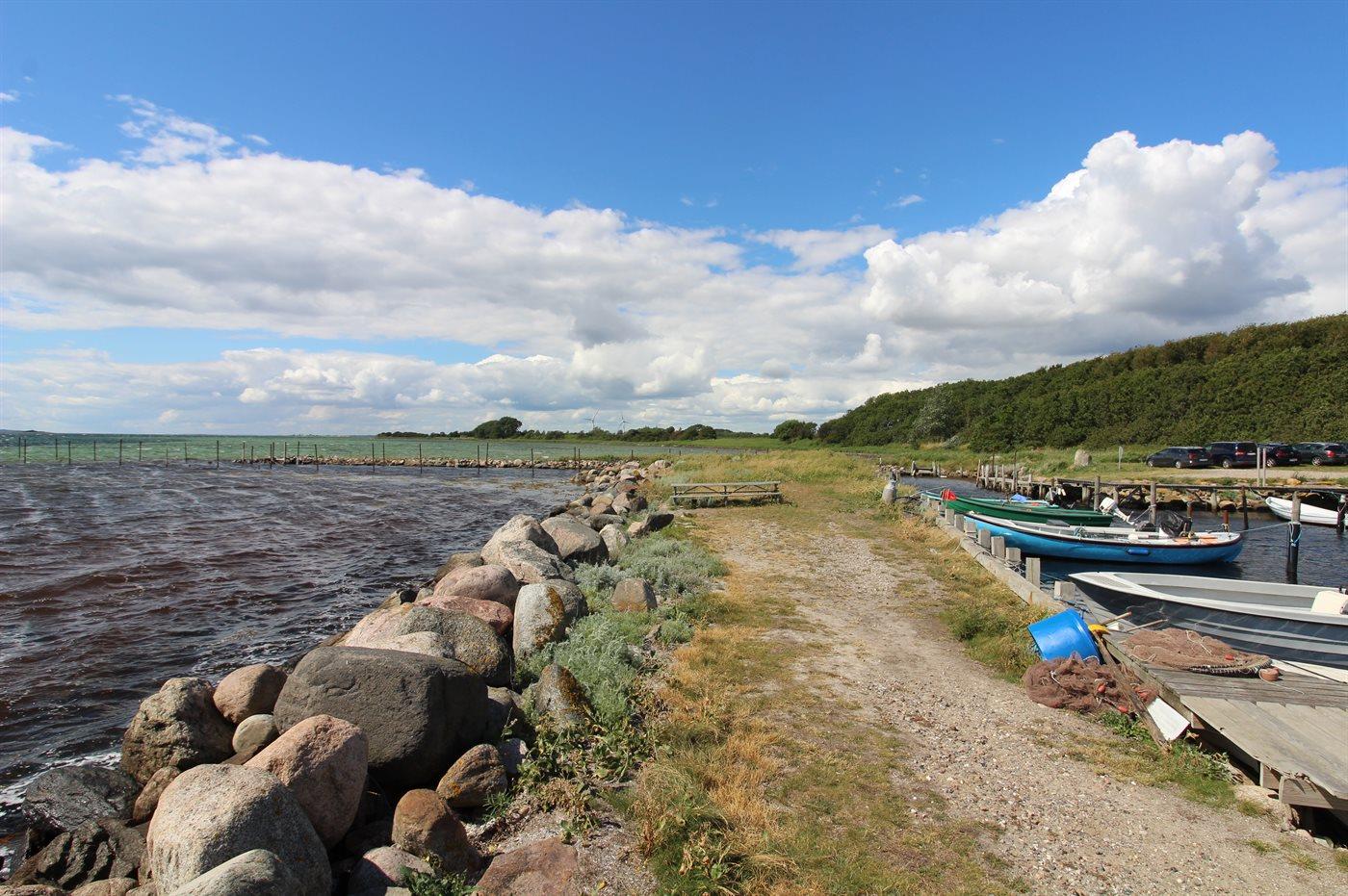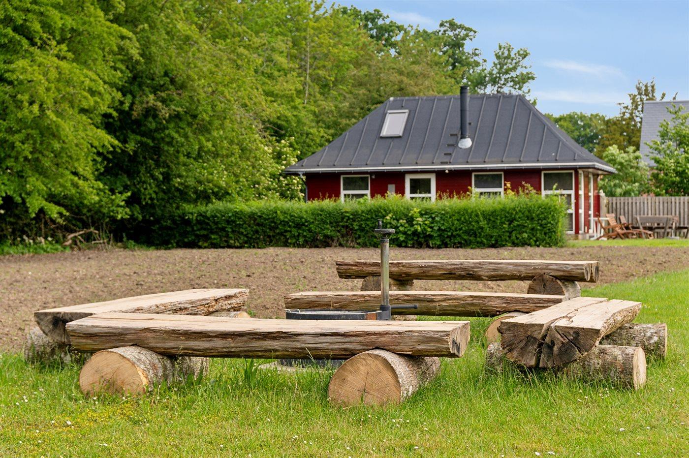 Hyggeligt sommerhus på Tåsinge med skov, badebro og naturgrund tæt på vandet.