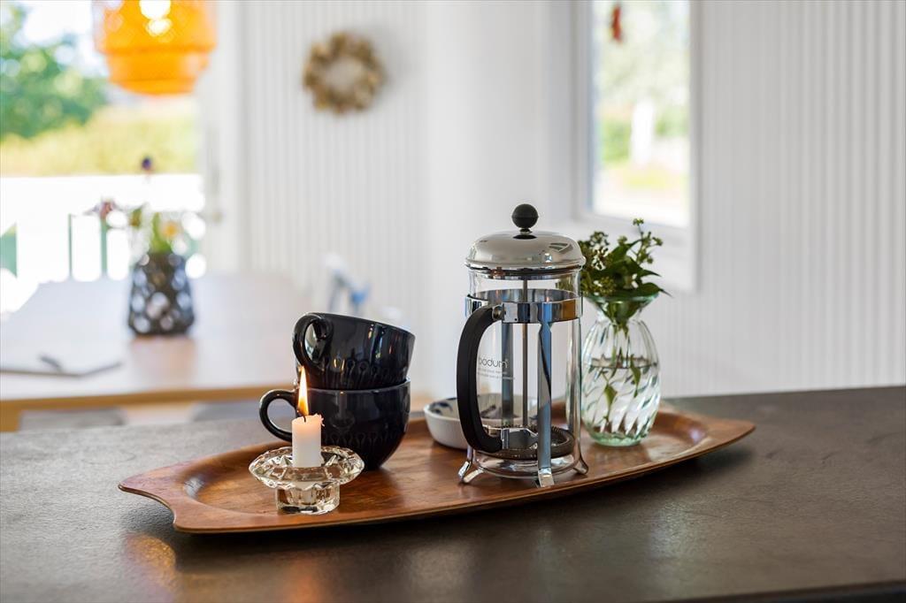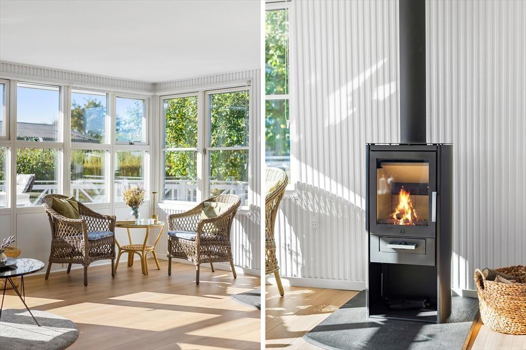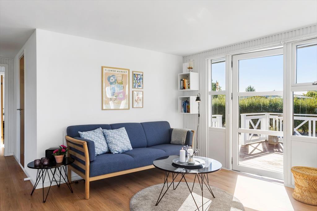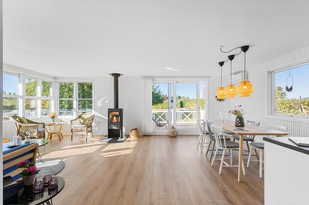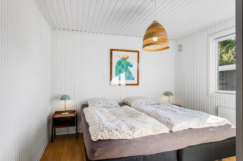 Når du træder indenfor i sommerhuset, mødes du af en lys og indbydende atmosfære, der straks får dig til at føle dig hjemme. Den rummelige stue, der smukt flyder sammen med det moderne køkken, er det ideelle sted at samles med familie og venner. Her kan du nyde hyggelige aftener med brætspil eller fordybe dig i en god bog, mens du lader dig varme af solens stråler, der strømmer ind gennem de store vinduer. De tre dejlige soveværelser, hver indrettet med komfortable senge, tilbyder en fredfyldt nattesøvn, så du vågner op frisk til nye eventyr. Huset er skabt til at give dig en uforstyrret oplevelse af afslapning, hvor stil og komfort går hånd i hånd.