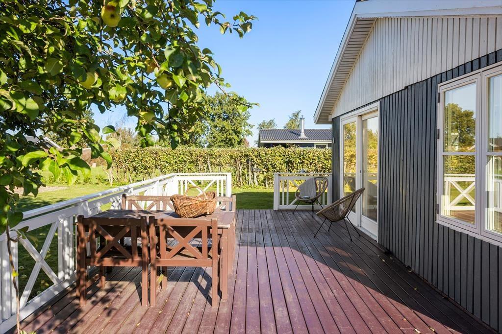 Den dejlige have omkring sommerhuset er en ægte oase, hvor du kan nyde lange dage i solen. Med frugttræer, der bugner af lækkerier, mens du slapper af på terrassen med en kop kaffe. Den delvist overdækkede terrasse er perfekt til både morgenmaden under åben himmel og sene sommeraftener med grillmad og hyggeligt samvær. Bare en kort gåtur fra huset finder du den børnevenlige sandstrand, hvor børnene kan lege i det bløde sand og plaske i det lave vand. Det er et ideelt sted for hele familien, hvor du kan nyde solen, havet og hinandens selskab.