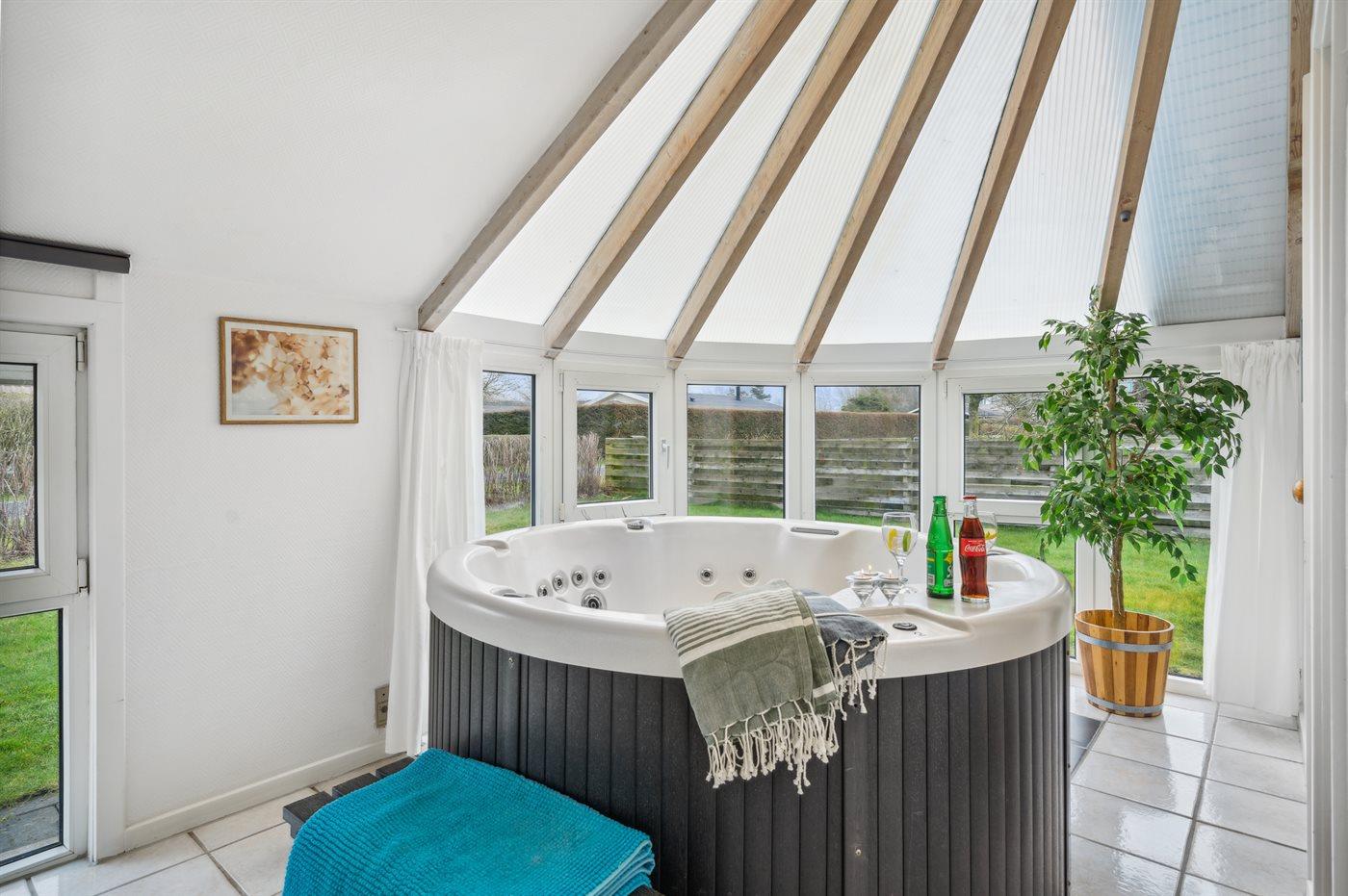 I den indendørs standvandsspa er der plads til 5 personer.