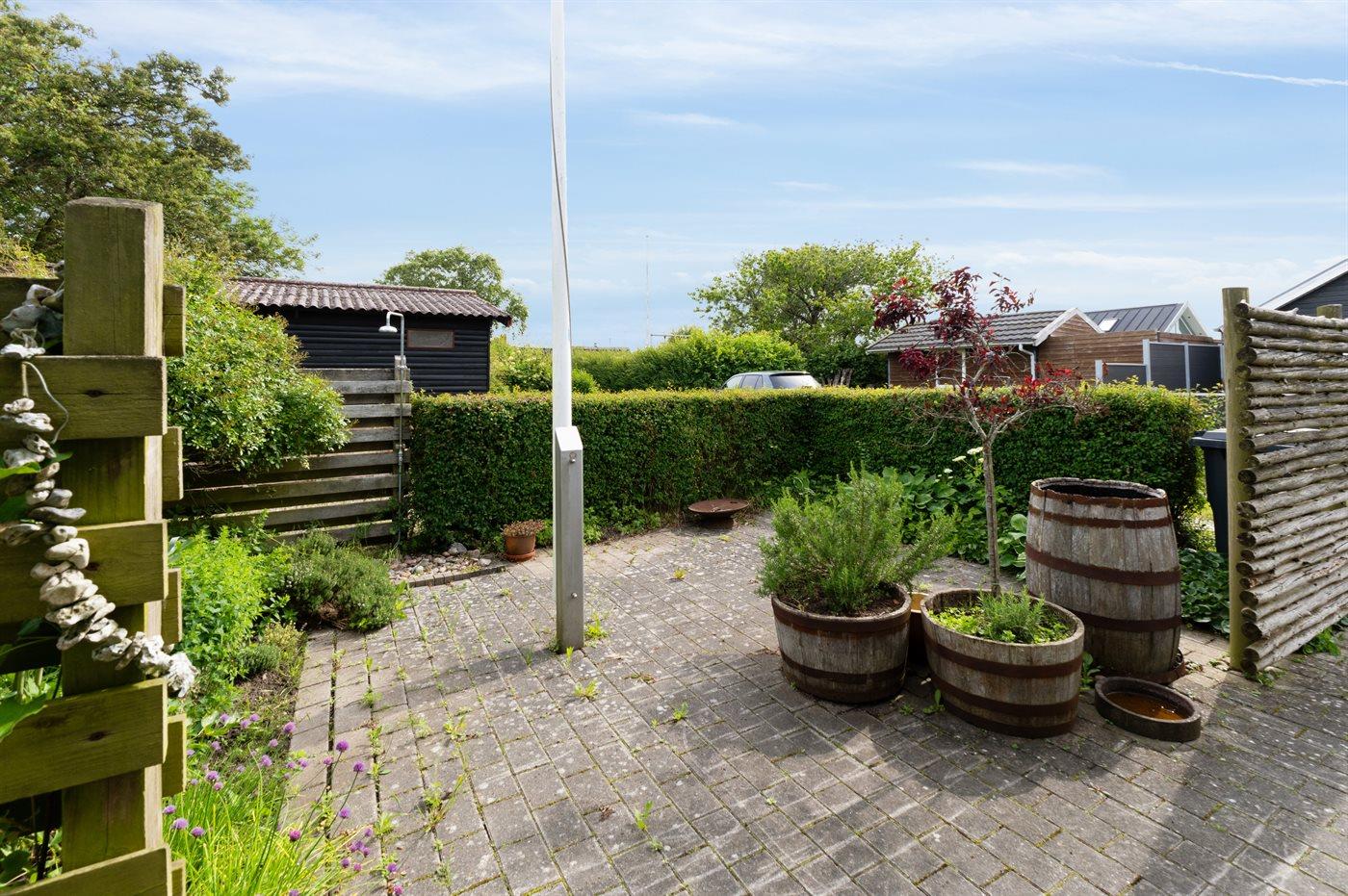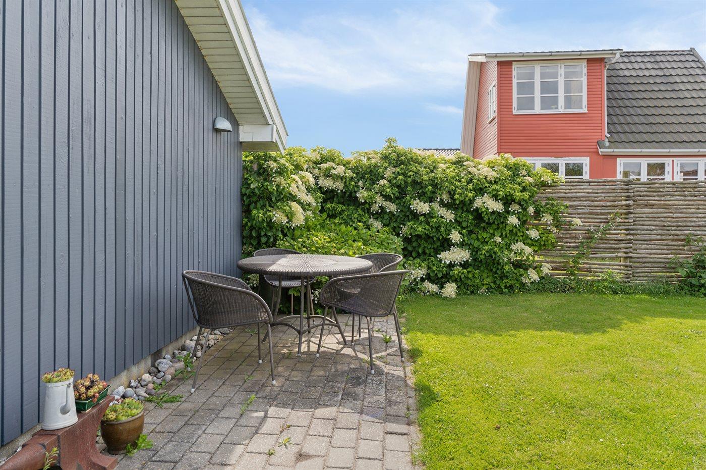 Ferieboligen er beliggende på en 440 m² stor havegrund. Der er 125 m til havet. Nærmeste forretning er beliggende i en afstand af 2000 m. Til ferieboligen hører åbent terrasseareal. Desuden er der overdækket terrasse. Udendørs bruser. Grill til rådighed. Der er carport til rådighed. Parkering ved ferieboligen.