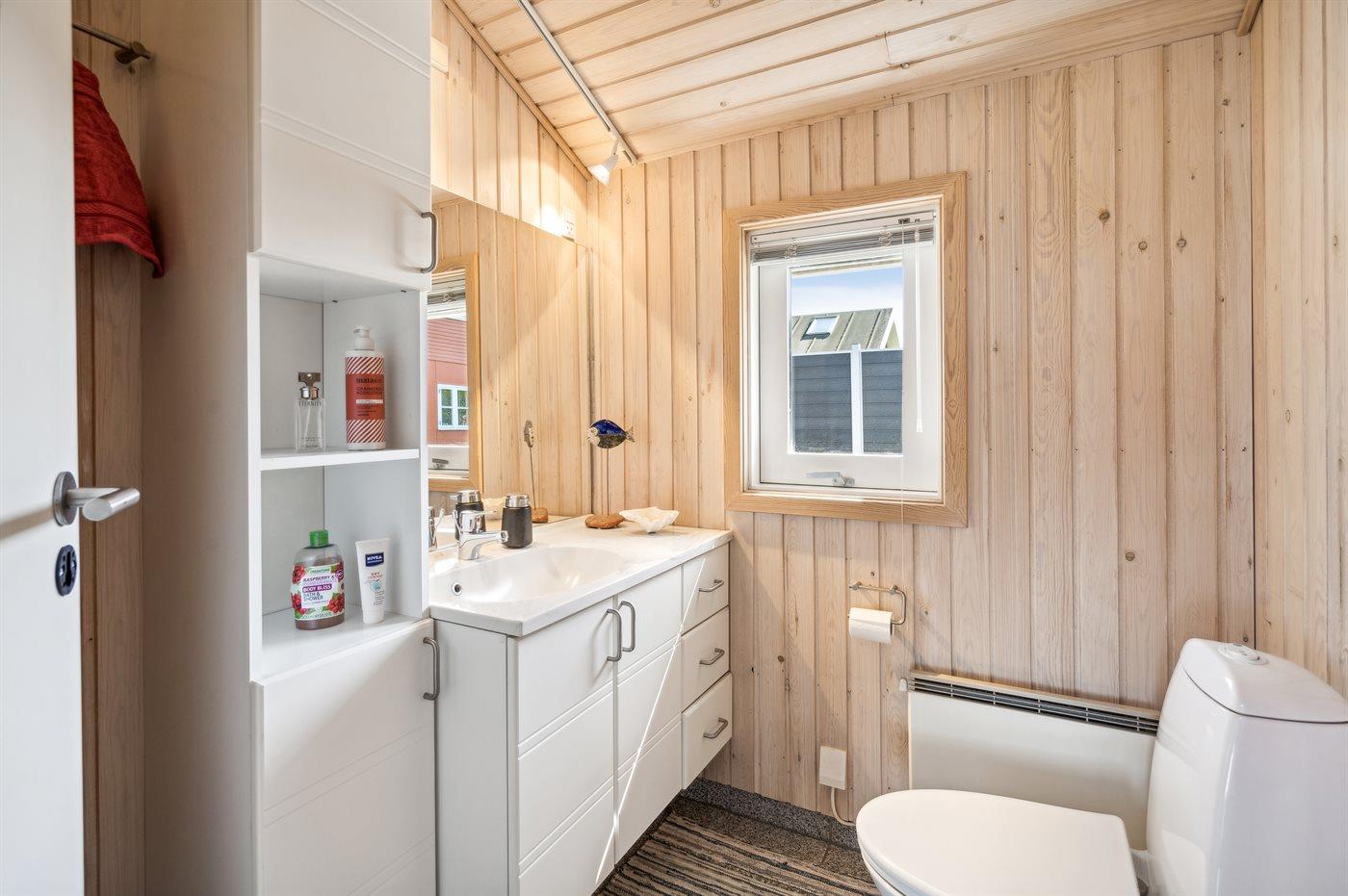 Der er 1 badeværelse med bruseniche og 2 toiletter, heraf 1 gæstetoilet. Der er gulvvarme på 1 badeværelse.