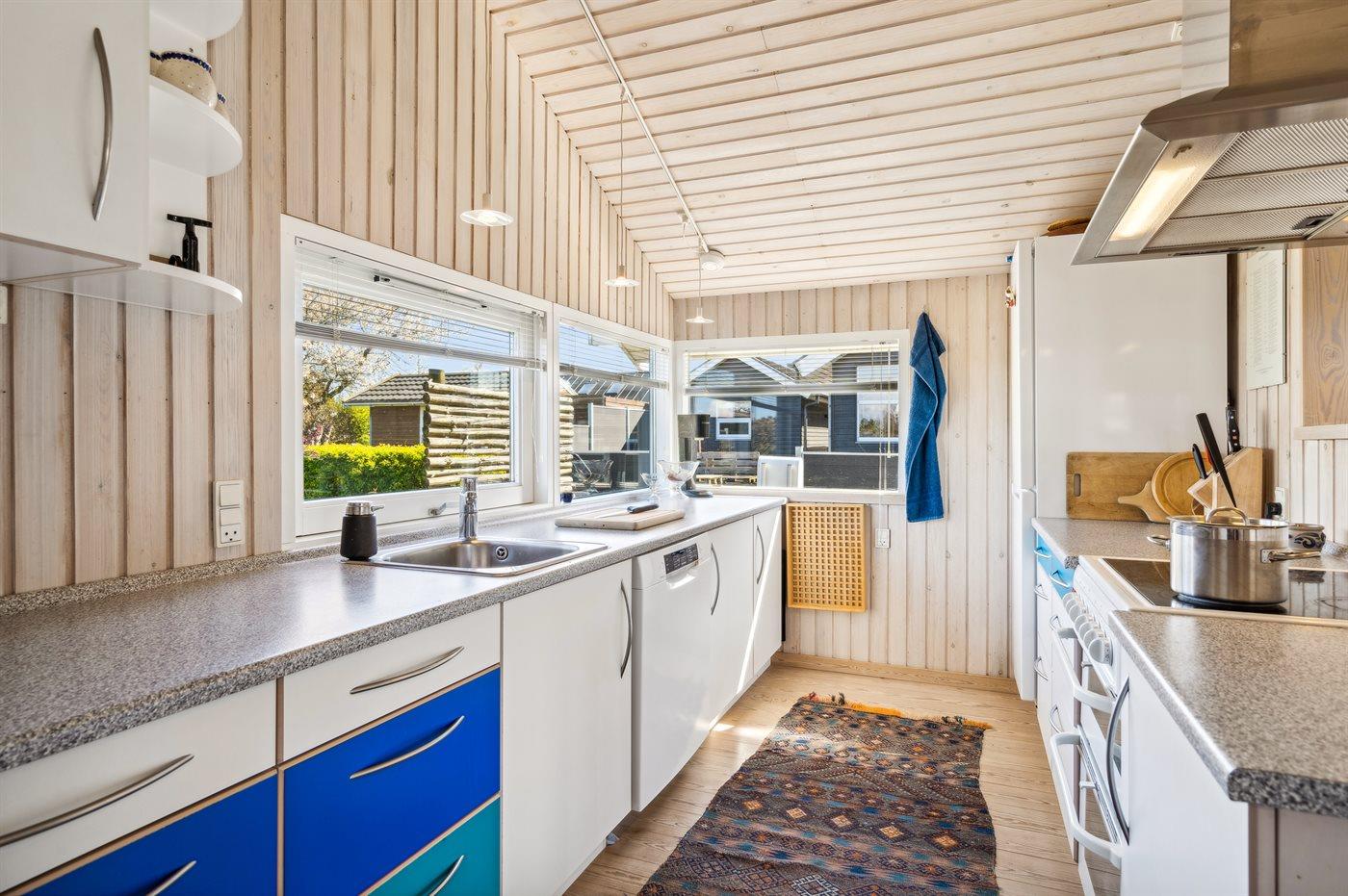 Køkkenet er udstyret med 1 køleskab. Der er 4 keramiske kogeplader, varmluftovn samt opvaskemaskine.
