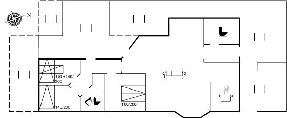 Der er i alt 3 soveværelser. Sovepladserne fordeler sig på: 6 sovepladser i dobbeltsenge.1 soveplads i køjeseng. Derudover er der 1 stk. barneseng.