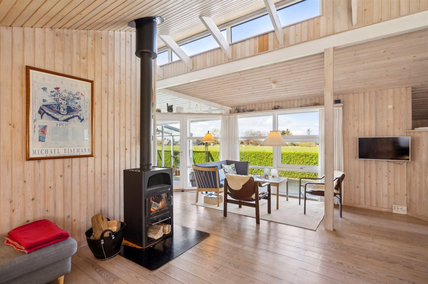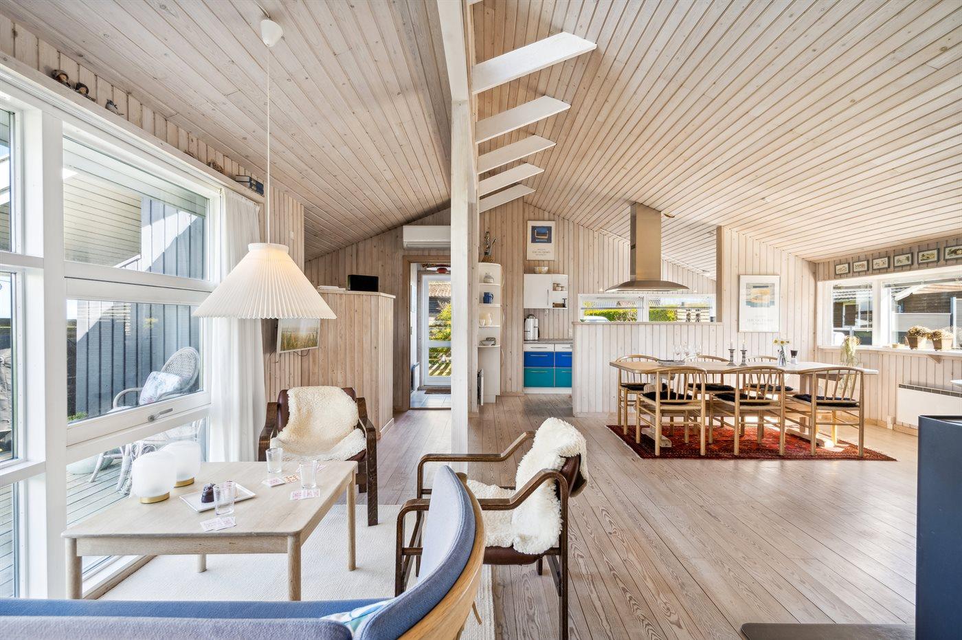 Dejligt stort sommerhus beliggende på rolig vej og ud til åbne marker. Huset er hyggeligt og lyst indrettet med et stort alrum i midten af huset i åben forbindelse med køkkenet. Omkring huset er der flere gode terrasseområder, så der altid er et sted med læ når solen skinner. En del af terrassen er overdækket, og der er fra den del af terrassen en fin udsigt ud over de åbne marker. Et virkeligt dejligt hus!