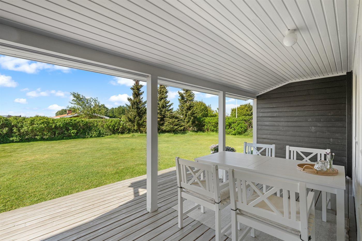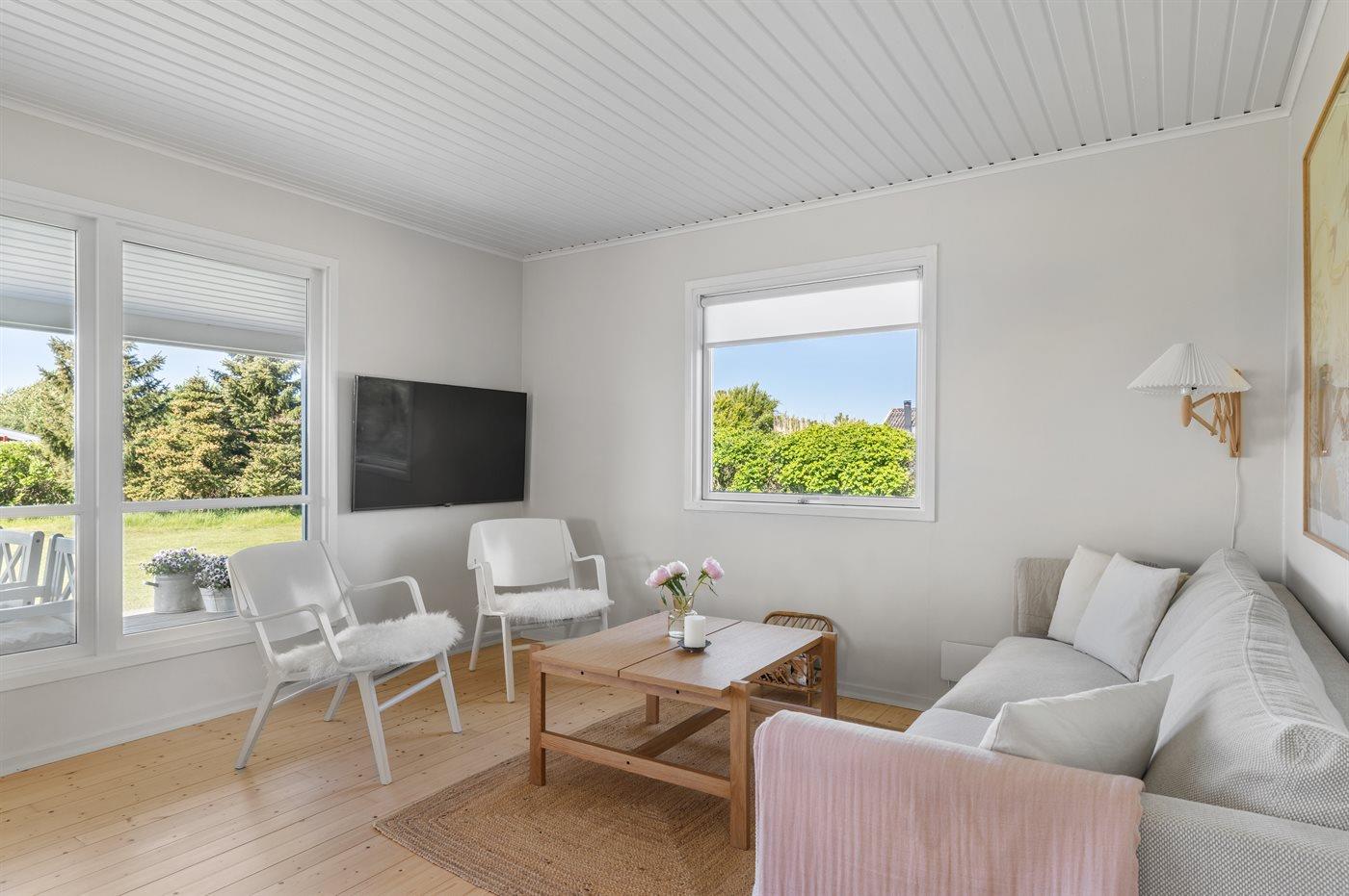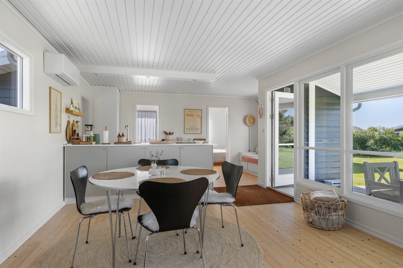 Charmerende sommerhus nær badestrand med stort terrasseområde og moderne faciliteter.