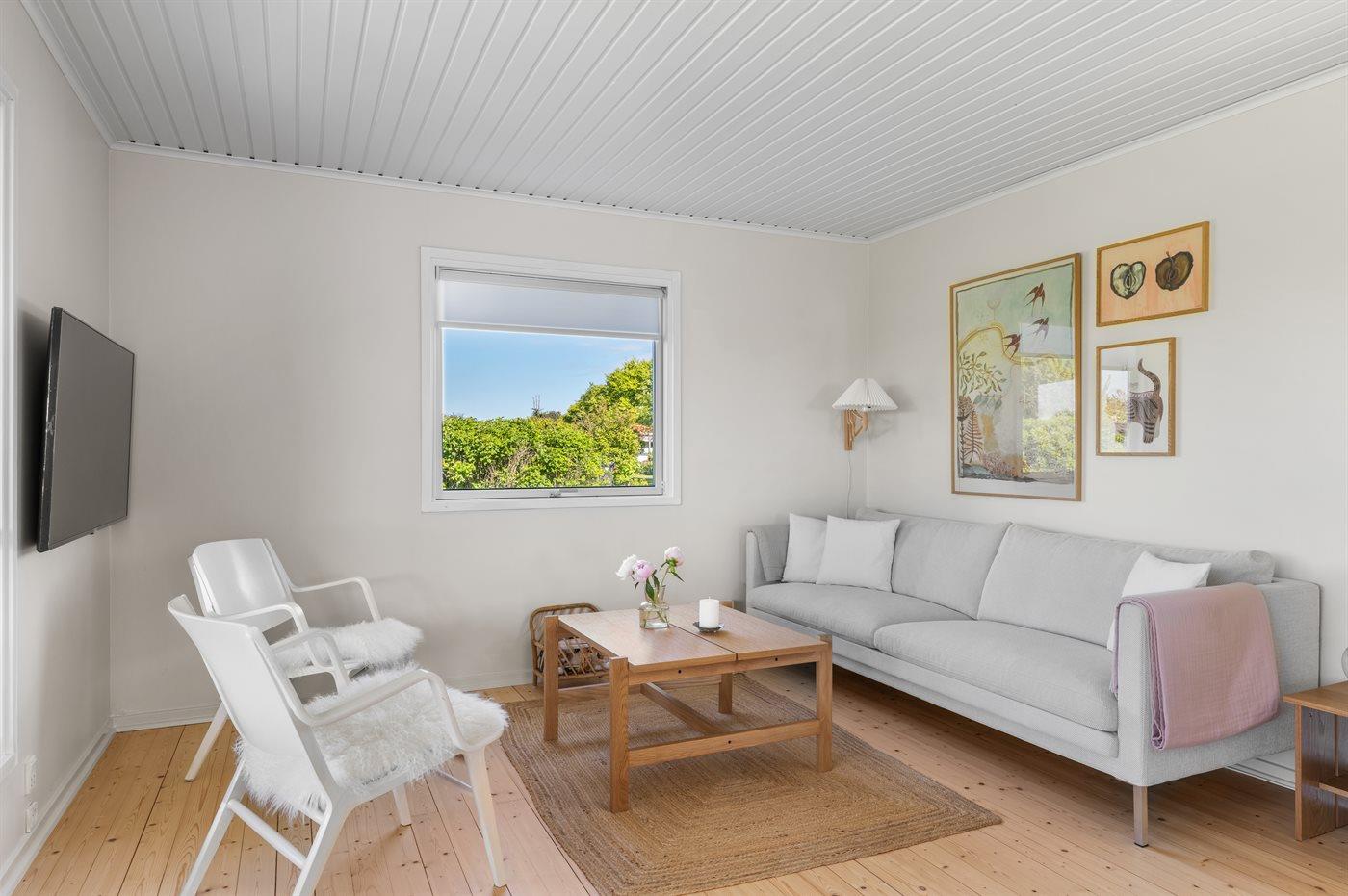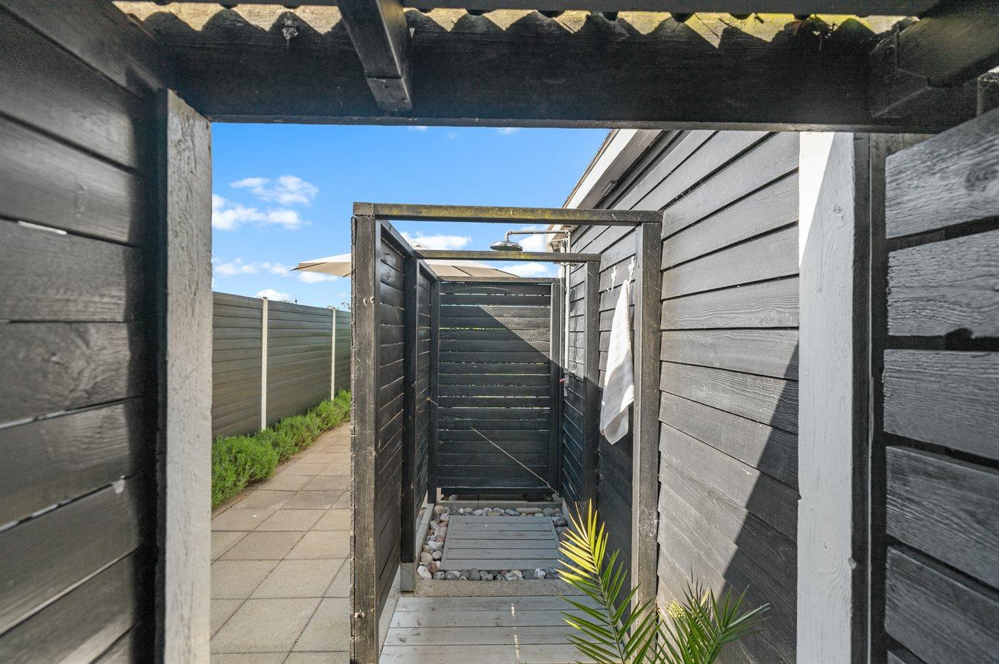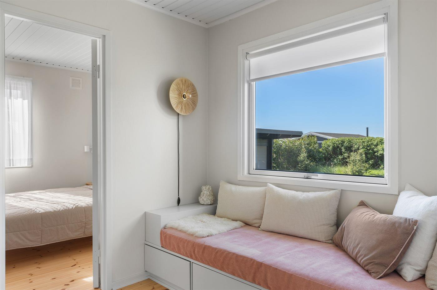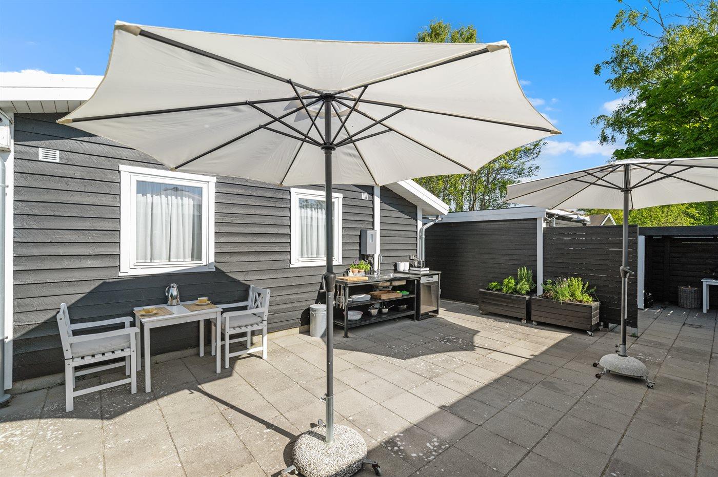 Charmerende sommerhus nær badestrand med stort terrasseområde og moderne faciliteter.