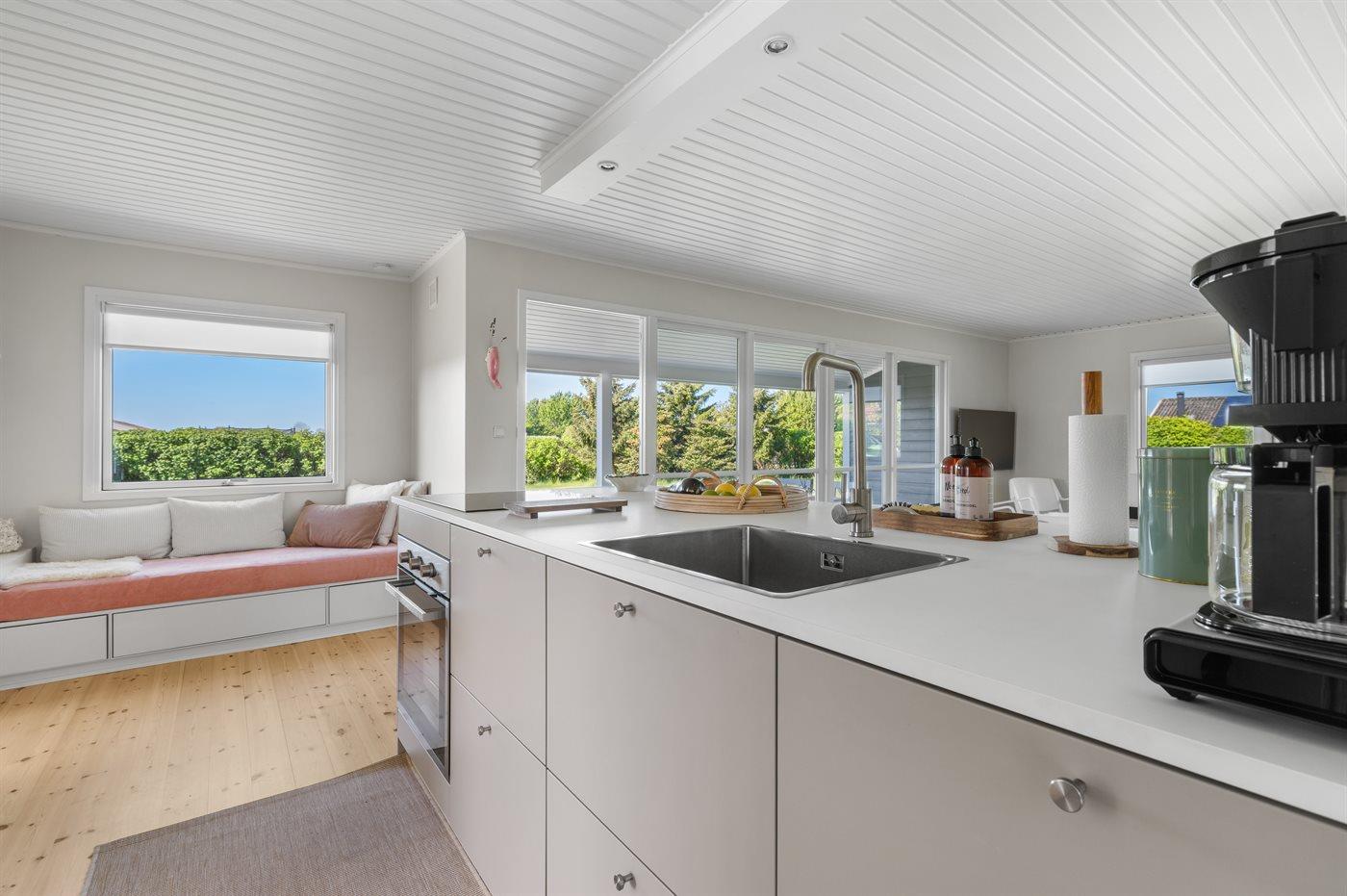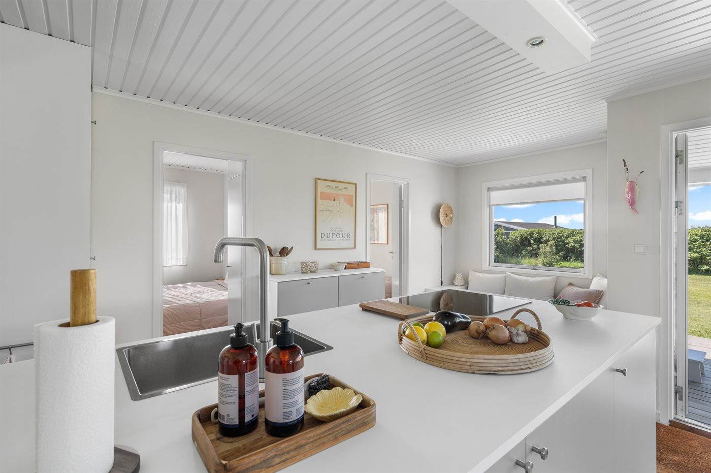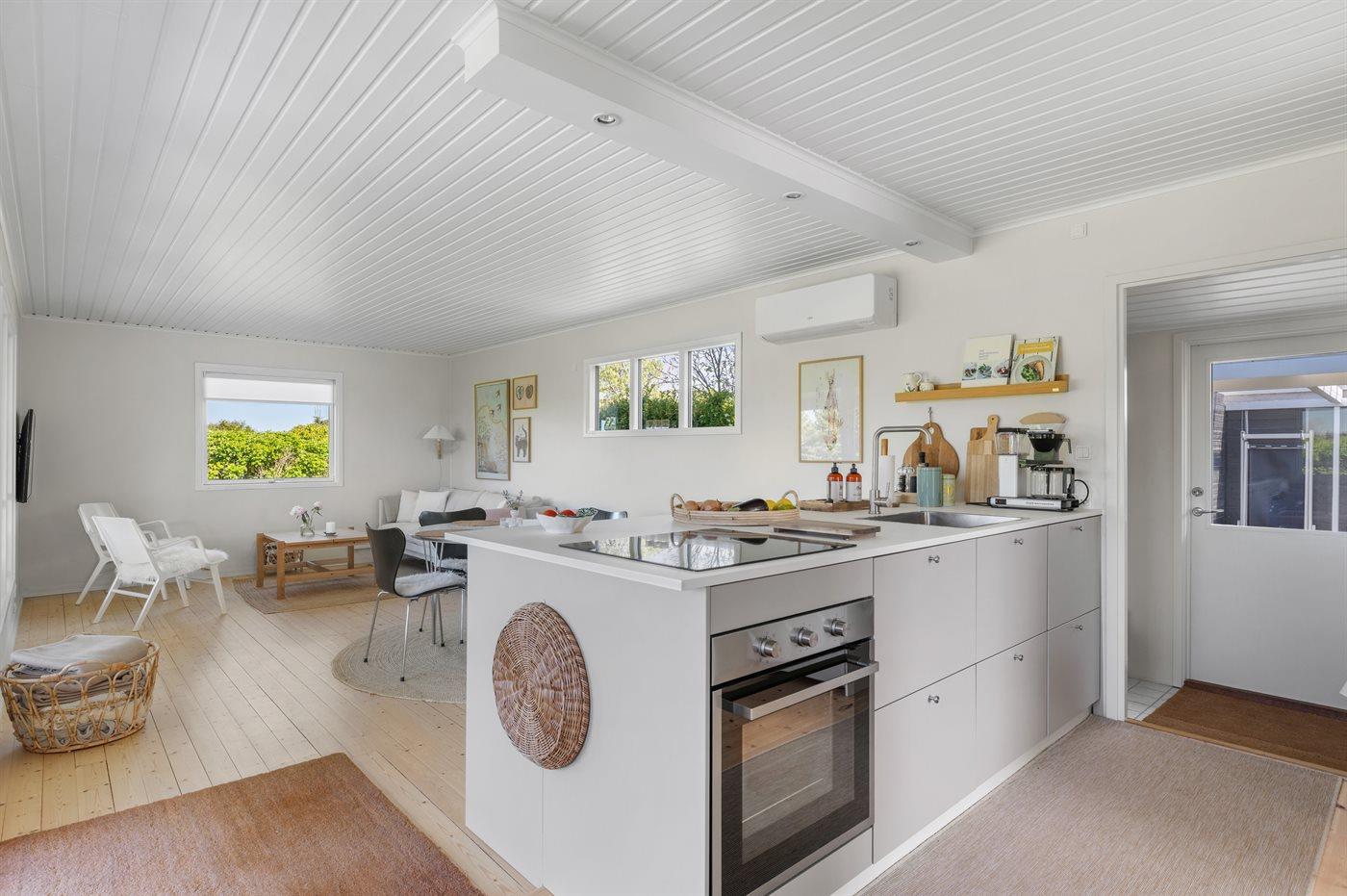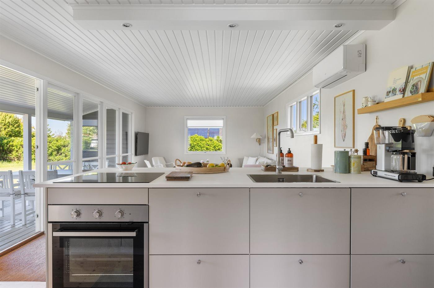 Køkkenet er udstyret med 1 køleskab. Der er 4 induktionskogeplader, varmluftovn samt opvaskemaskine.